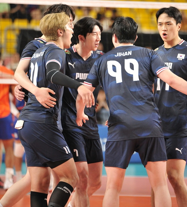 이날 한국은 젊은 삼각편대 임동혁(국군체육부대), 허수봉(현대캐피탈), 김지한(우리카드)이 나란히 12점, 11점, 11점을 폭발시키며 34점을 합작했다. 블로킹에서 10 대 2, 디그에서 45 대 28로 앞서는 등 공·수에서 압도적인 우위를 점했다.