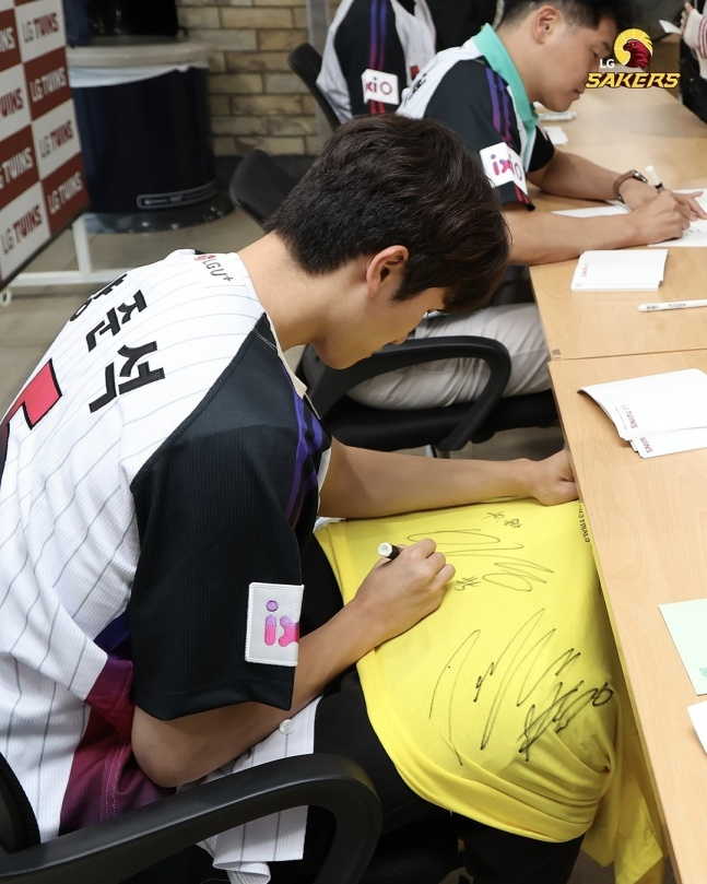 어렵게 창단 첫 우승을 일군 만큼, LG 세이커스 농구단은 팬들과 약속도 지키려 노력했다. 우천 취소로 이벤트가 취소되자 LG 트윈스-LG 세이커스 양 구단은 잠실야구장 로비에서 팬 사인회를 개최했다. 시간당 5㎜의 궂은 비에도 약 20여 명의 팬이 경기장까지 찾았고 조상현 감독과 두 선수는 사인뿐 아니라 사진 촬영까지 약 1시간에 걸쳐 팬들을 일일이 응대했다. 구단에서도 팬들에게 도시락을 제공했다. 유기상, 양준석 두 선수 역시 LG 트윈스 캡틴 박해민과 따로 만나 친필 사인 유니폼을 전달받고 기념사진을 찍으며 추억을 남겼다.