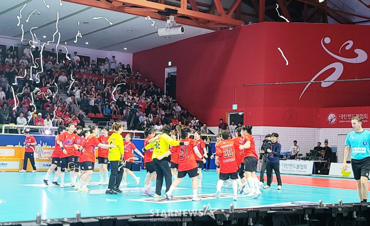 이계청(삼척시청) 감독이 이끄는 한국 여자 핸드볼 대표팀은 21일 오후 4시 충북 청주 SK호크스 아레나에서 일본 여자 국가대표팀과 2025 핸드볼 국가대표 한일전에서 29-25로 승리했다. 한국은 이해원이 6골, 서아루가 5골, 김소라와 김보은이 각 4골, 조은빈과 허유진이 각 3골로 활약했다. 무엇보다 '거미손' 박새영의 선방쇼가 최고의 하이라이트였다.