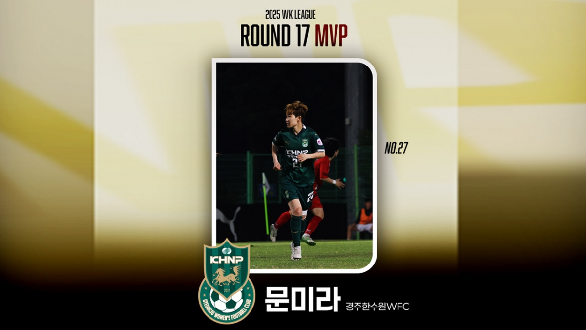문미라(33·경주한수원WFC)가 2025 WK리그 17라운드 최우수선수(MVP)로 선정됐다.