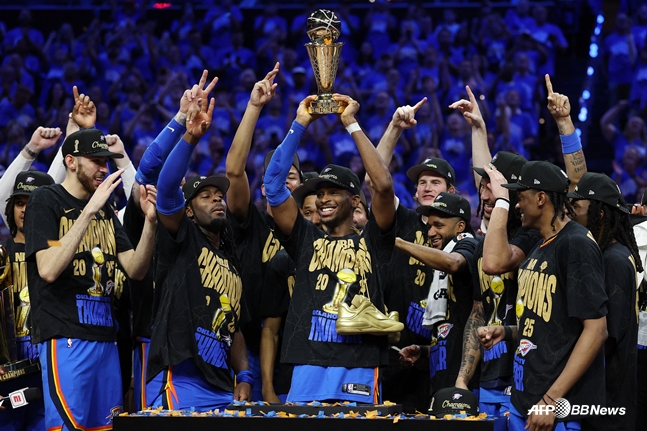 미국프로농구(NBA) 오클라호마시티 선더가 창단 처음으로 파이널 우승을 차지했다. 에이스 샤이 길저스-알렉산더(27)는 평균 득점 선두와 정규시즌 최우수선수(MVP), 파이널 MVP를 모두 석권하는 기염을 토했다.