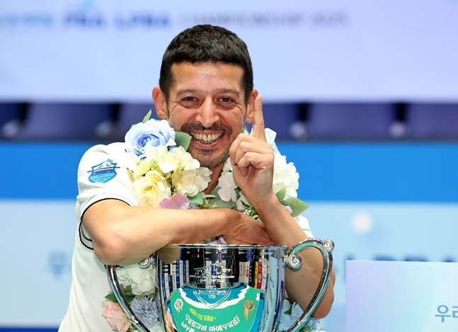 '튀르키예 강호' 무라트 나지 초클루(하나카드)가 '스페인 3쿠션 전설' 다니엘 산체스(이상 51·웰컴저축은행)를 꺾고 프로당구 새 시즌 개막전 정상에 올랐다.
