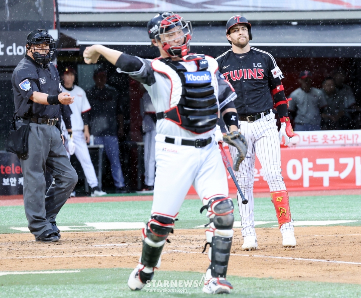 스포츠야구[포토]'스트라이크아웃 낫아웃' 오스틴발행 : 2025.06.24 ・ 19:37수원=강영조 선임기자LG 3번타자 오스틴이 24일 수원KT위즈파크에서 열린 2025KBO리그 LG트윈스와 KT위즈의 경기 3회초 2사 1루에서 스트라이크아웃 낫아웃으로 물러나고 있다. 2025.06.24.<저작권자 © 스타뉴스, 무단전재 및 재배포 금지>낫아웃오스틴위즈스트라이크아웃수원추천 기사강영조 선임기자기자홈좋아요 스포츠-야구의 인기 급상승 뉴스스포츠-야구의 최신 뉴스
