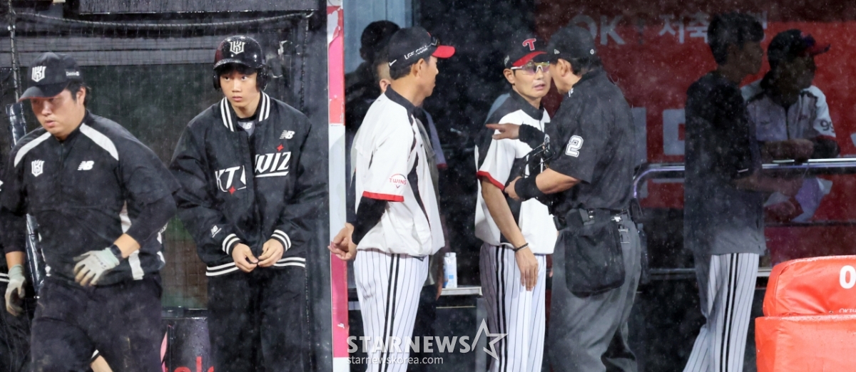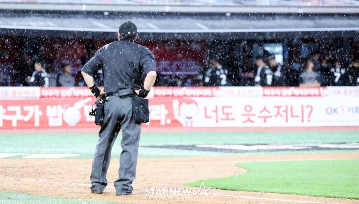 스포츠야구[포토]'폭우로 고민에 빠진 구심'발행 : 2025.06.24 ・ 21:04수원=강영조 선임기자전일수 구심이 24일 수원KT위즈파크에서 열린 2025KBO리그 LG트윈스와 KT위즈의 경기에서 폭우가 쏟아지는 가운데 6회초 수비를 마치고 경기를 중단시키고 있다. 2025.06.24.<저작권자 © 스타뉴스, 무단전재 및 재배포 금지>위즈폭우구심전일수수원트윈스추천 기사강영조 선임기자기자홈좋아요 스포츠-야구의 인기 급상승 뉴스스포츠-야구의 최신 뉴스