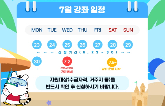 이번 '단기 스포츠 체험 강좌'는 무더운 여름, 저소득층 유·청소년이 안전하고 시원한 스포츠 체험 지원을 위해 전국 50여 개 기초지자체, '캐리비안베이' 및 '동성로 스파크'와 협업을 통해 진행된다.