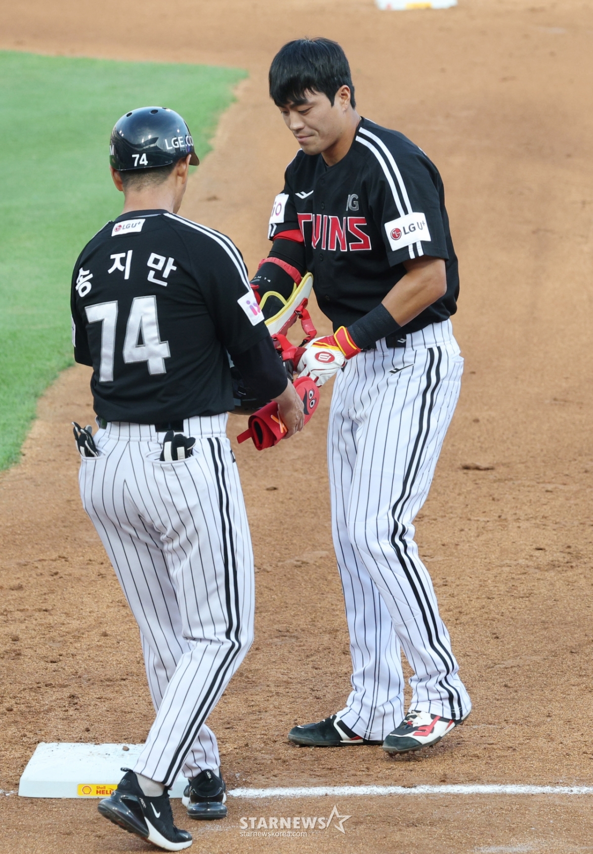 스포츠야구[포토] 천성호 '유니폼 신고식은 다음에'발행 : 2025.06.26 ・ 18:54수원=김진경 대기자2025 신한 SOL Bank KBO리그 시범경기 kt 위즈 대 LG 트윈스 경기가 26일 수원KT위즈파크에서 열렸다.KT에서 LG로 이적한 천성호가 2회초 첫 타석에서 2루수 플라이로 아웃된 후 송지만 코치에게 헬멧을 건네고 있다.<저작권자 © 스타뉴스, 무단전재 및 재배포 금지>프로야구KBOLG_트윈스천성호이적트레이드추천 기사김진경 대기자기자홈좋아요 스포츠-야구의 인기 급상승 뉴스스포츠-야구의 최신 뉴스