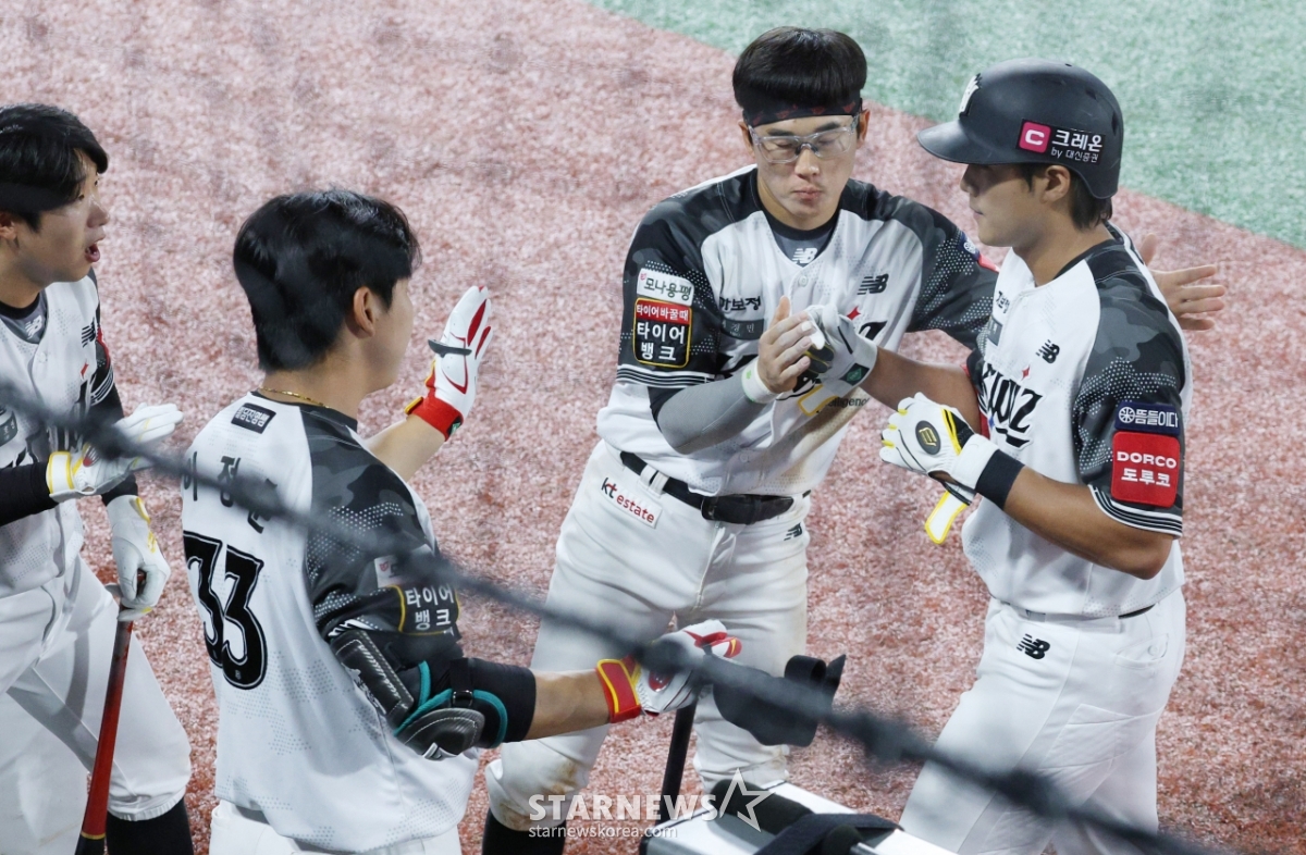 스포츠야구[포토] 장진혁 '아싸라비아 콜롬비아'발행 : 2025.06.26 ・ 20:44수원=김진경 대기자2025 신한 SOL Bank KBO리그 시범경기 kt 위즈 대 LG 트윈스 경기가 26일 수원KT위즈파크에서 열렸다.KT 장진혁이 7회말 1사 1,3루에서 역전 1타점 내야땅볼을 날린 후 동료들의 환영을 받고 있다.<저작권자 © 스타뉴스, 무단전재 및 재배포 금지>브리핑요약 없이도 가볍게 읽으실 수 있는 짧은 뉴스입니다.추천 기사김진경 대기자기자홈좋아요스포츠-야구의 인기 급상승 뉴스스포츠-야구의 최신 뉴스AD