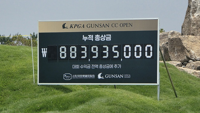매 라운드가 끝날 때마다 총상금이 증가하는 골프 대회가 있다. 2025시즌 KPGA 투어 'KPGA 군산CC 오픈'의 총상금이 26일 1라운드 종료 기준 8억 8393만 5000원을 기록했다고 한국프로골프협회가 27일 전했다.