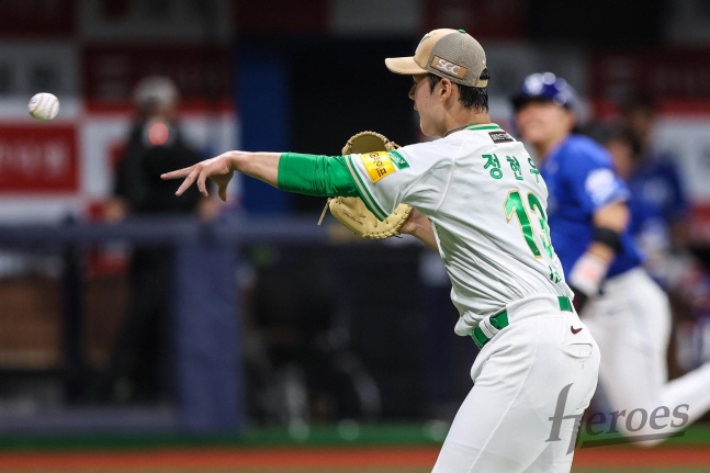 이재현에게 높은 코스의 직구로 삼진을 잡아 첫 아웃카운트를 확보한 정현우는 구자욱의 땅볼 타구를 직접 잡아 홈으로 송구해 추가 실점을 막아냈다.