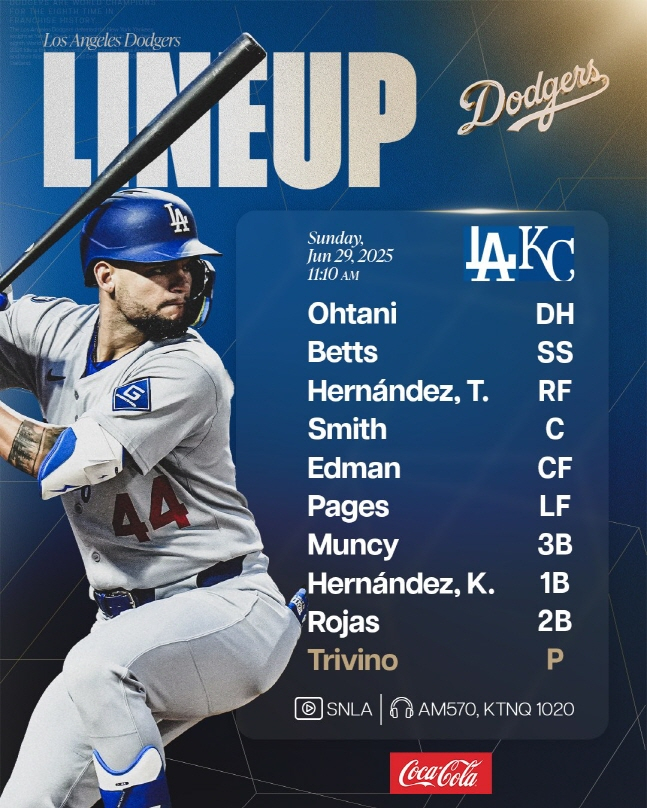 김혜성은 30일(한국시간) 오전 3시 10분부터 미국 미주리주 캔자스시티 카우프만 스타디움에서 열리는 캔자스시티 로열스와 2025 미국프로야구 메이저리그(MLB) 방문경기에서 선발 제외됐다.