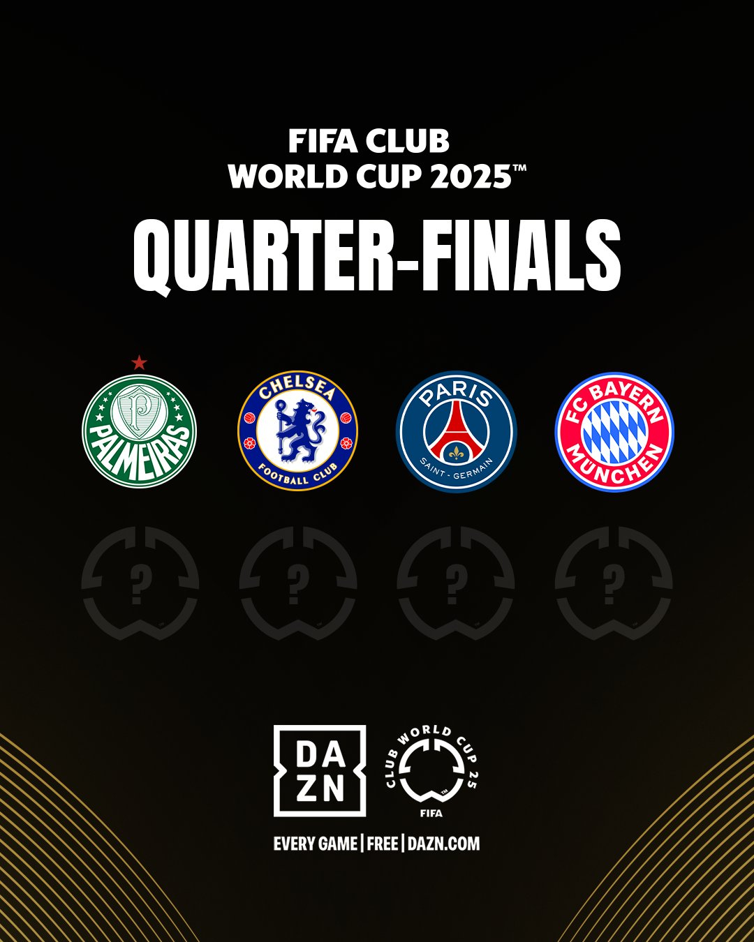 2025 국제축구연맹(FIFA) 클럽 월드컵 8강 대진표가 절반 확정됐다. 파우메이라스(브라질)와 첼시(잉글랜드)에 이어 파리 생제르맹(PSG·프랑스)과 바이에른 뮌헨(독일) 간 '빅매치'가 성사됐다.