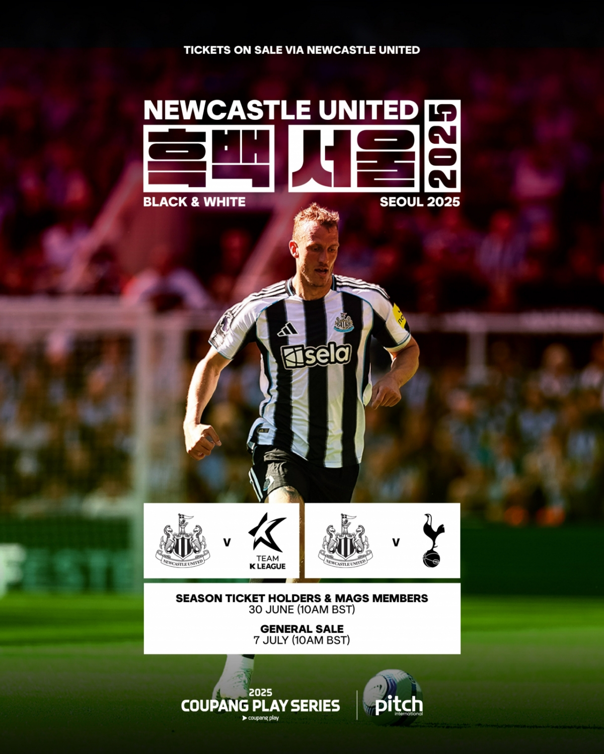 EPL 명문 뉴캐슬은 7월 프리시즌 투어로 한국을 방문한다. 내달 30일에는 팀K리그와 수원월드컵경기장에서 경기를 치른 뒤 3일 토트넘 홋스퍼와 서울월드컵경기장에서 맞붙는다.