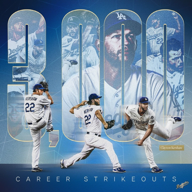 MLB 역사상 20번째 대기록에 이름을 올린 커쇼는 놀란 라이언(5714개)의 뒤를 이어 랜디 존슨(4875개), 로저 클레멘스(4672개), 스티브 칼턴(4136개)가 4000개를 넘어섰고 현역 중에선 저스틴 벌랜더(샌프란시스코·3471개)와 맥스 슈어저(토론토·3419개)만이 기록한 역사에 이름을 올렸다. MLB 역대 한 팀에서만 3000탈삼진을 달성한 3번째 투수이자 다저스 원클럽맨으로는 최초다.
