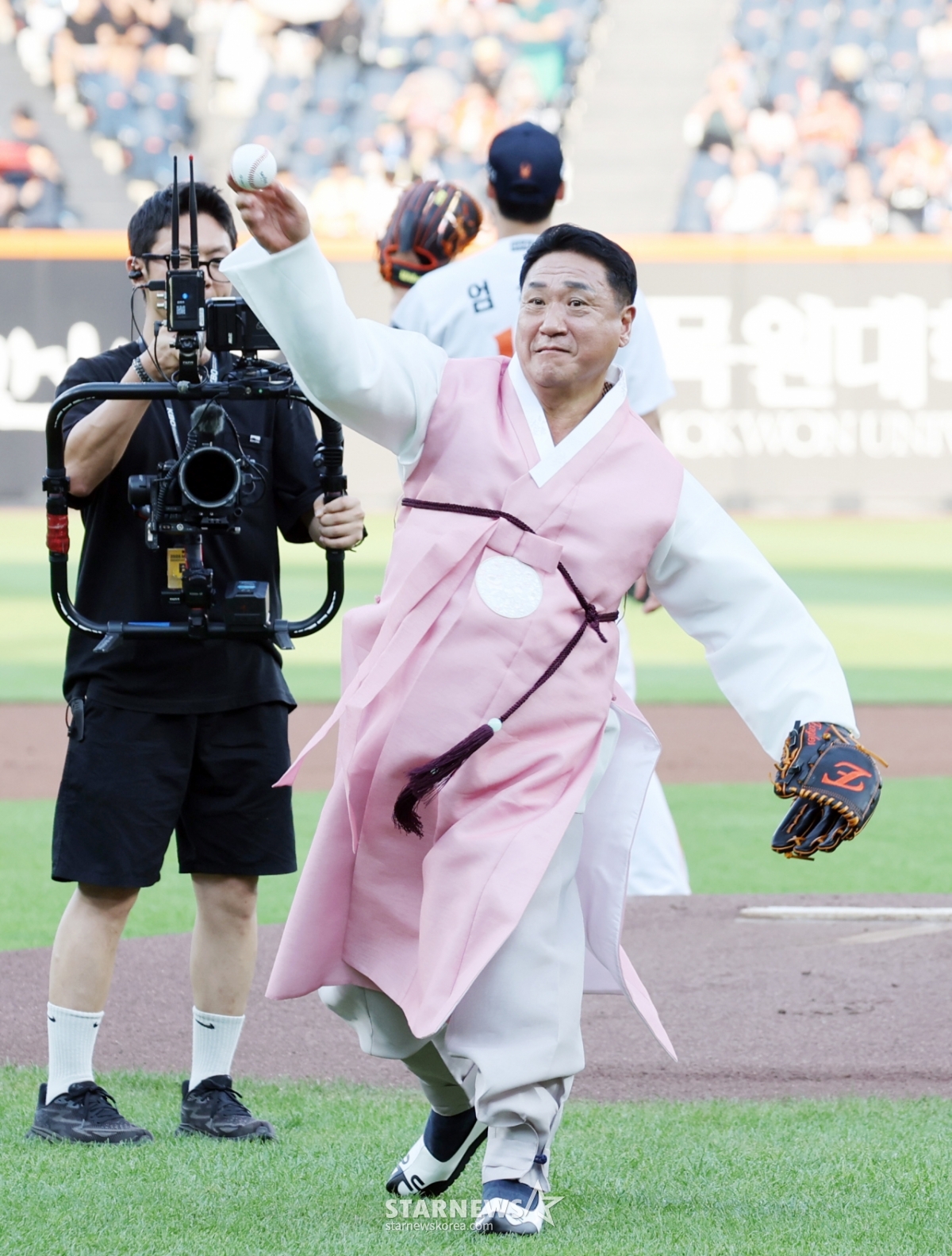 스포츠야구[포토]'도포자락 휘날리며' 그럴듯해보였는데..발행 : 2025.07.03 ・ 20:59수정 : 2025.07.03 ・ 22:16대전=강영조 선임기자정영철 영동군수가 3일 대전한화생명볼파크에서 2025KBO리그 한화이글스와 NC다이노스의 경기에서 시구를 하고 있다. 안타깝게도 볼은 포수가 아닌...... 시타는 영동군의회 의장인 신현광. 2025.07.03.<저작권자 © 스타뉴스, 무단전재 및 재배포 금지>정영철영동대전볼파크한화이글스다이노스추천 기사강영조 선임기자기자홈좋아요 스포츠-야구의 인기 급상승 뉴스스포츠-야구의 최신 뉴스