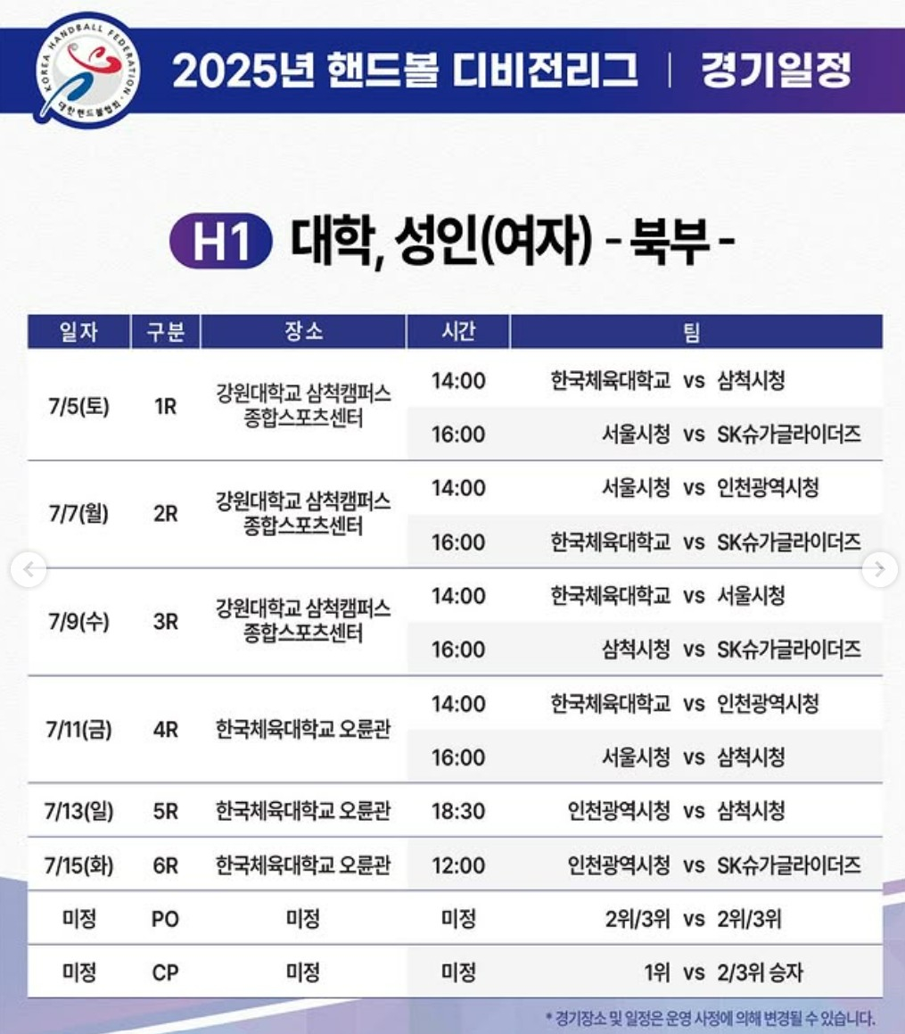2025 핸드볼 디비전리그는 오는 5일 오후 2시 한국체육대학교와 삼척시청의 경기로 시작된다.