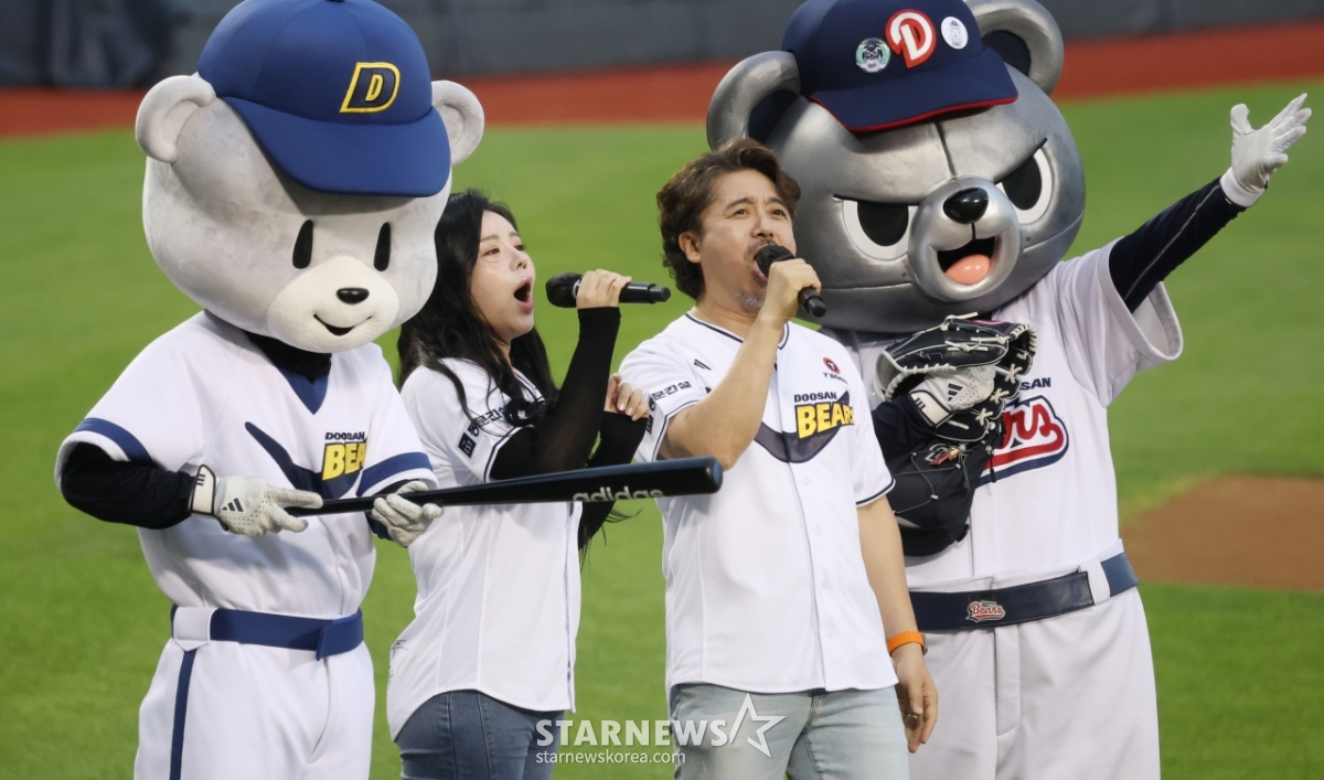 뮤지컬 배우 윤영석이 두산 승리기원 시구를, 시타는 배우 윤지인이 맡았다.