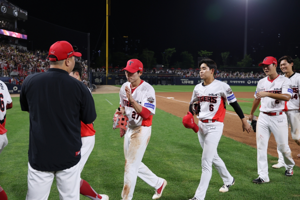그야말로 기적의 드라마 같은 행보라 할 수 있다. KIA는 시즌 초반 한때 최하위(4월 12일 기준 순위 10위)로 처지며 어려운 상황을 맞이하는 듯했다. 무엇보다 김도영(오른쪽 햄스트링), 김선빈(왼쪽 종아리), 나성범(오른쪽 종아리), 윤도현(오른쪽 손가락 골절상) 등 주축 선수들이 부상으로 빠진 가운데, 일궈낸 성과라 더욱 큰 의미가 있다.
