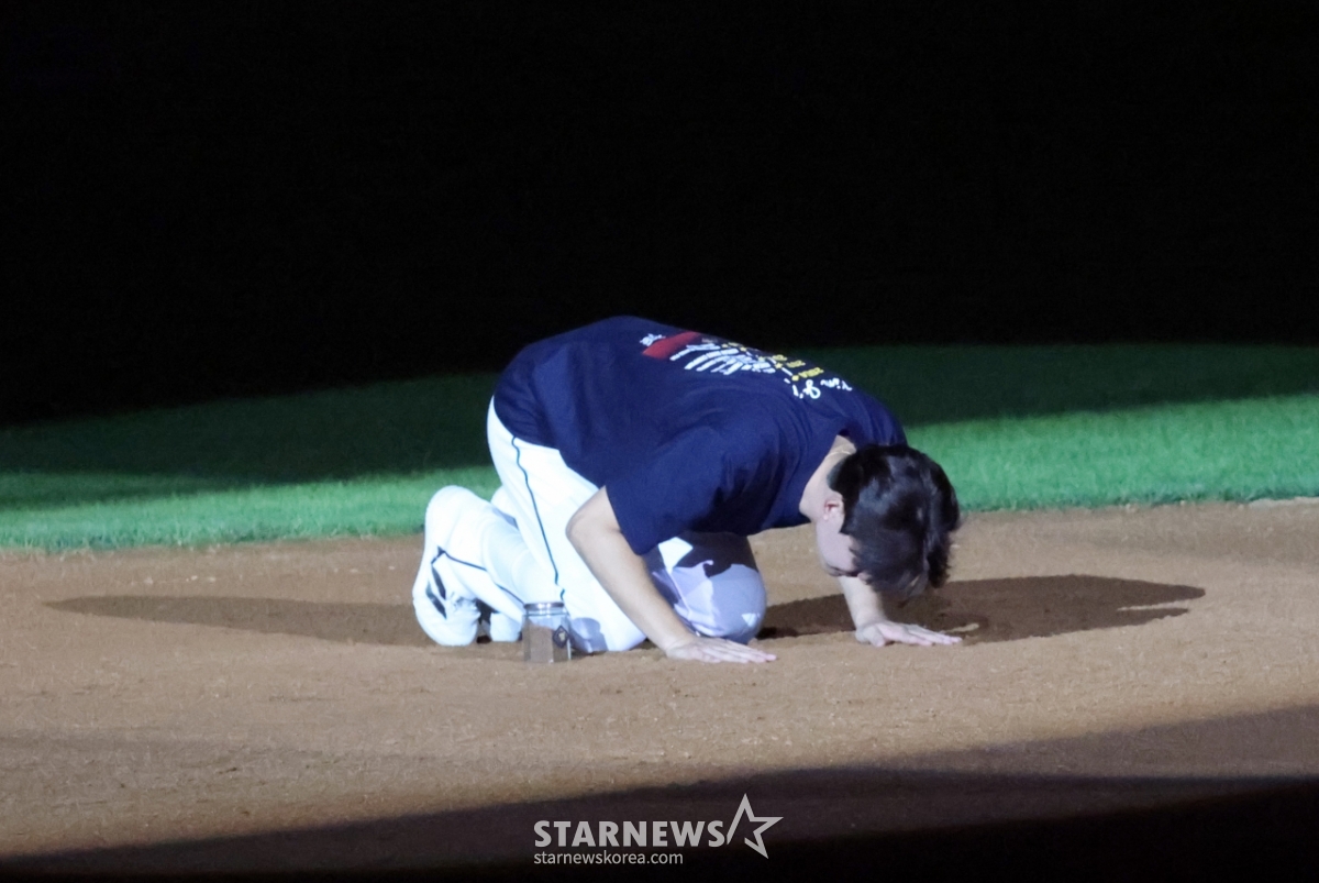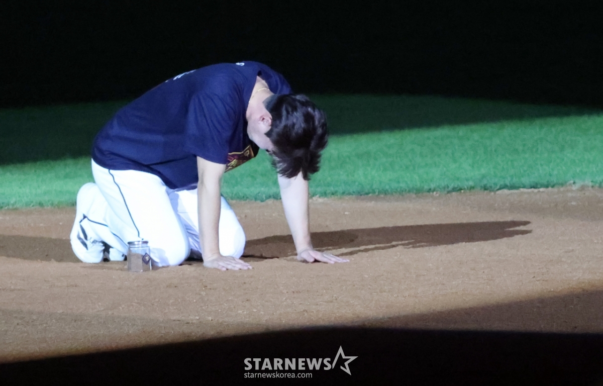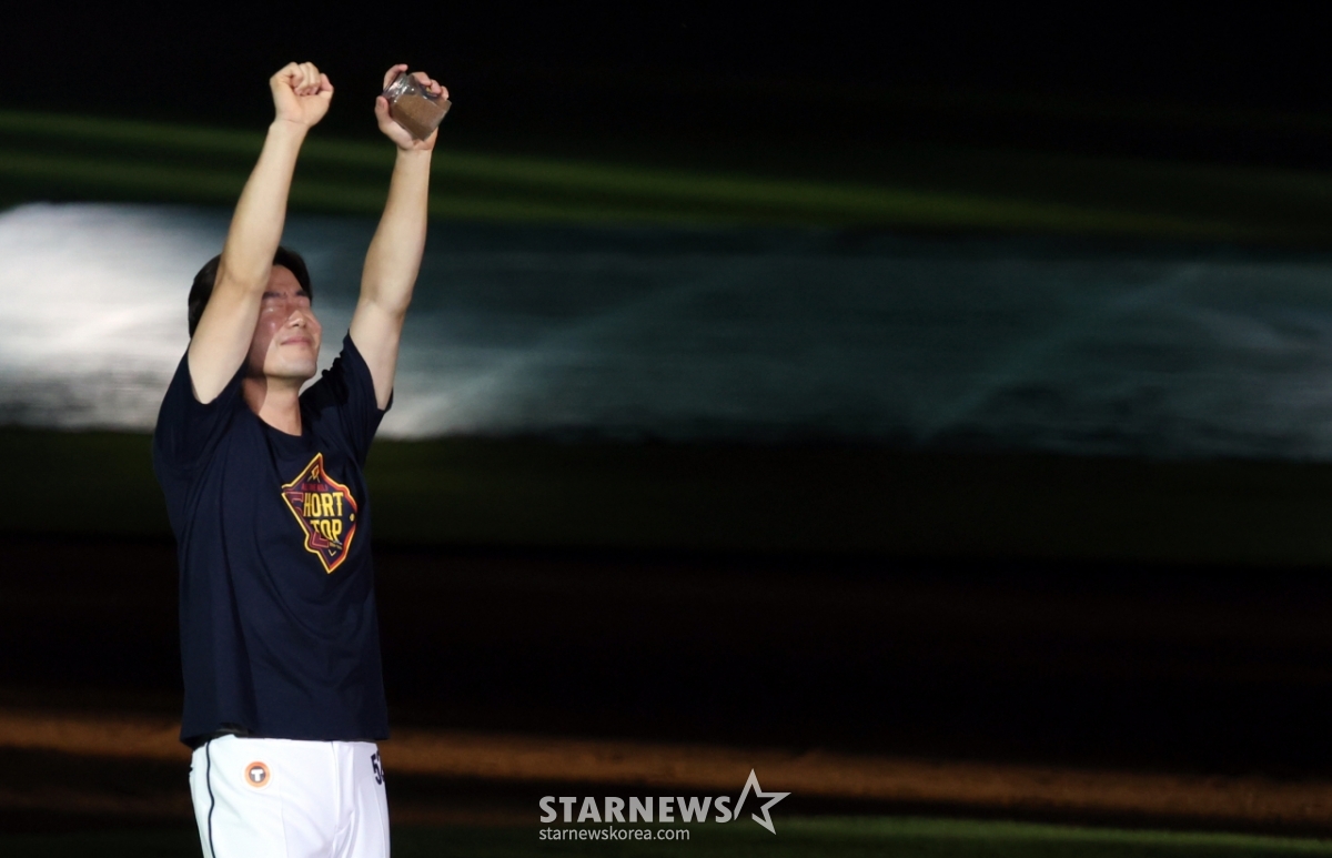 스포츠야구[한번에 쓱]'얼굴에 흙 닦아주는 양의지' 유격수 자리 흙 담은 김재호발행 : 2025.07.06 ・ 22:35잠실=강영조 선임기자두산 유격수 김재호의 공식은퇴식이 열리는 가운데 김재호가 6일 잠실구장에서 2025KBO리그 두산베어스와 KT위즈 경기에서 시구를 하며 승리요정이 됐다. 승리한 후 치러진 은퇴식에서 두산 천재유격수의 은퇴행사와 고별연설이 진행되고 있다.잠실구장 유격수 자리의 흙은 담아 간직하게된 김재호. 그의 마지막 모습을 화보로 엮어봤다. 2025.07.06.<저작권자 © 스타뉴스, 무단전재 및 재배포 금지>김재호양의지두산잠실유격수자리추천 기사강영조 선임기자기자홈좋아요 스포츠-야구의 인기 급상승 뉴스스포츠-야구의 최신 뉴스
