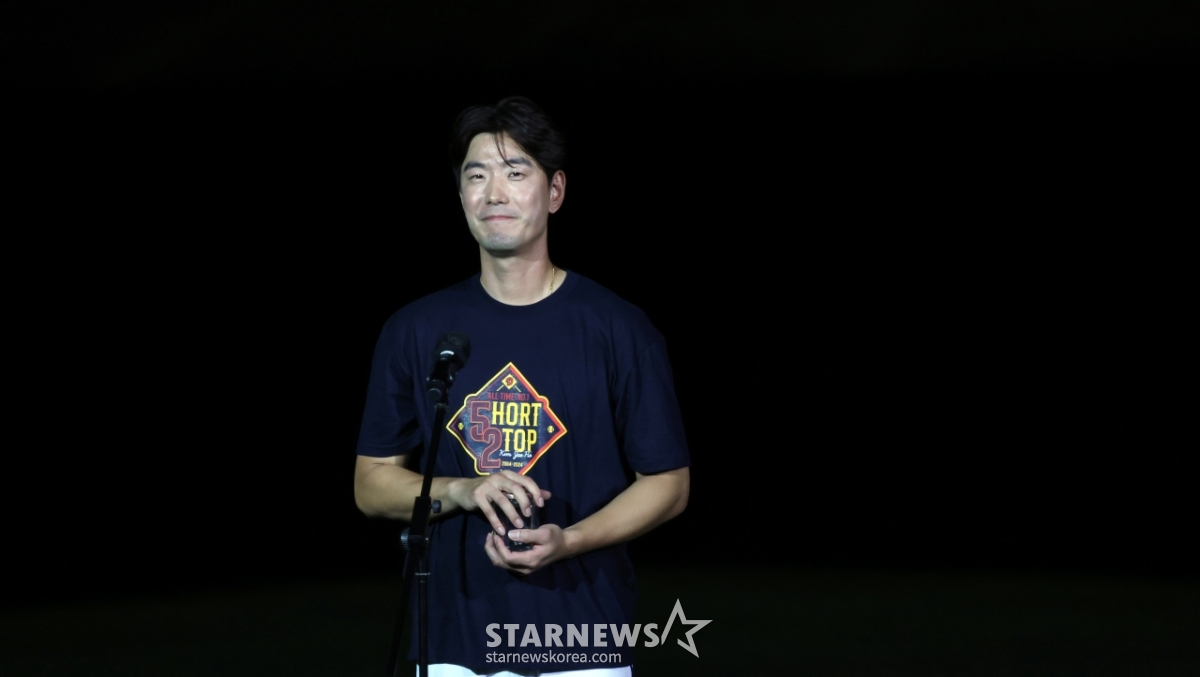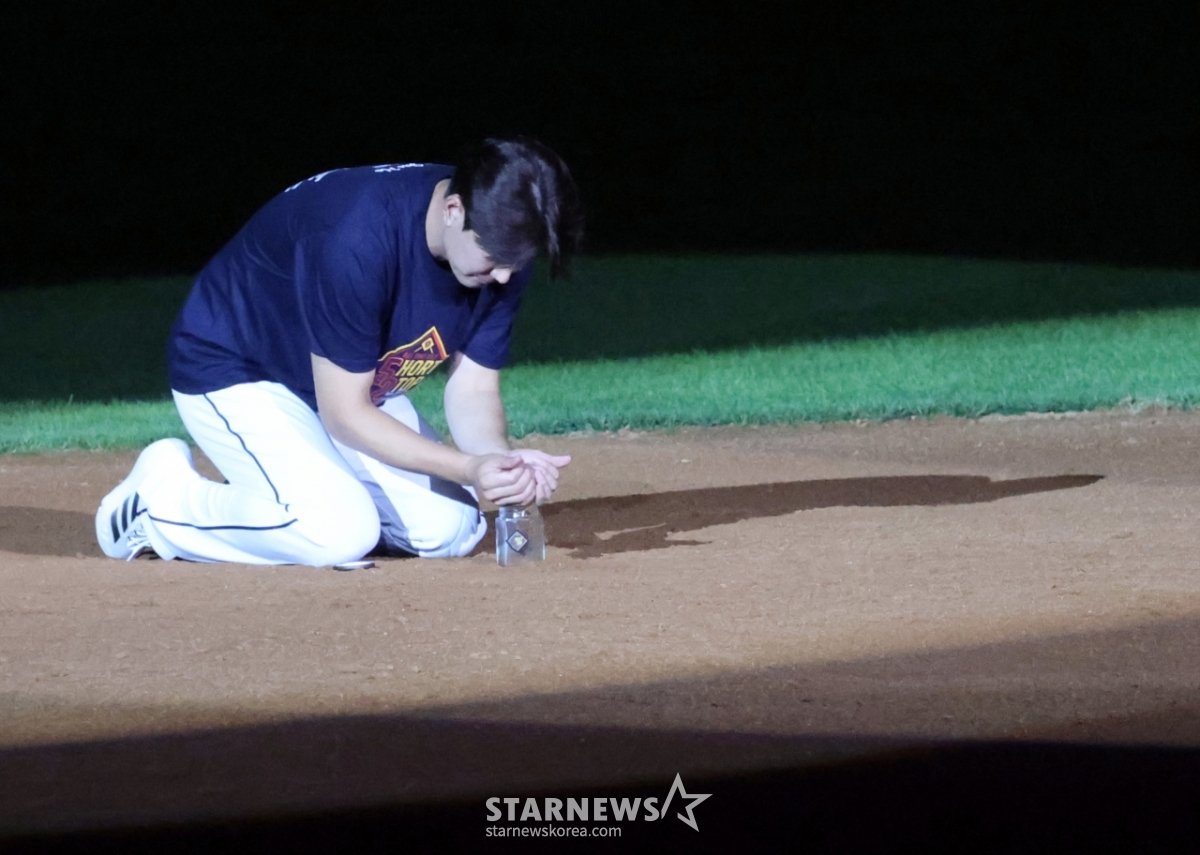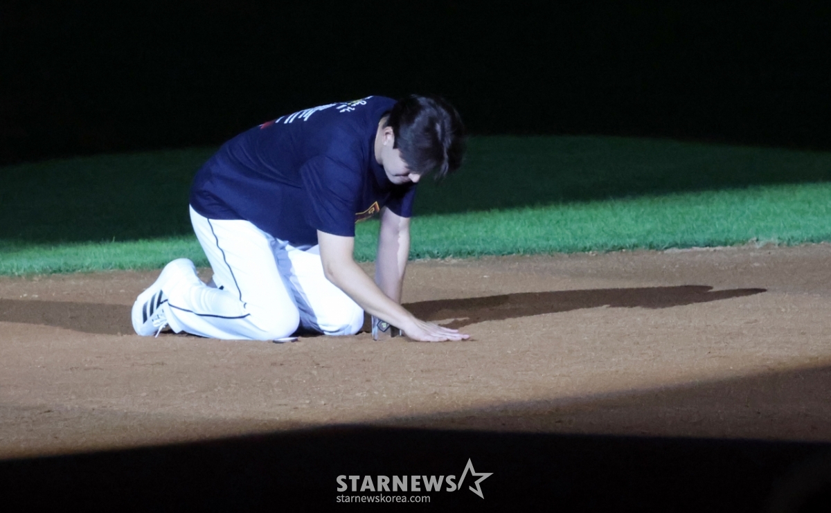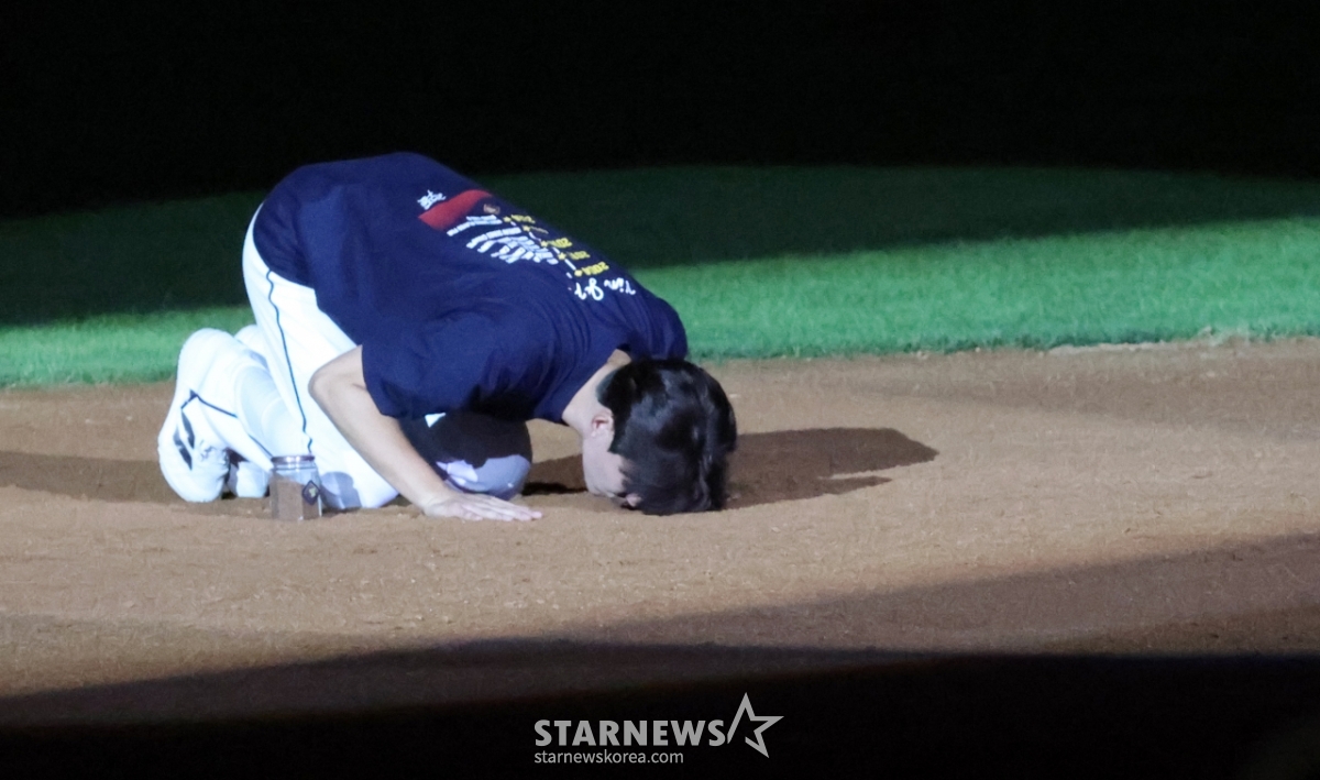 스포츠야구[한번에 쓱]'얼굴에 흙 닦아주는 양의지' 유격수 자리 흙 담은 김재호발행 : 2025.07.06 ・ 22:35잠실=강영조 선임기자두산 유격수 김재호의 공식은퇴식이 열리는 가운데 김재호가 6일 잠실구장에서 2025KBO리그 두산베어스와 KT위즈 경기에서 시구를 하며 승리요정이 됐다. 승리한 후 치러진 은퇴식에서 두산 천재유격수의 은퇴행사와 고별연설이 진행되고 있다.잠실구장 유격수 자리의 흙은 담아 간직하게된 김재호. 그의 마지막 모습을 화보로 엮어봤다. 2025.07.06.<저작권자 © 스타뉴스, 무단전재 및 재배포 금지>김재호양의지두산잠실유격수자리추천 기사강영조 선임기자기자홈좋아요 스포츠-야구의 인기 급상승 뉴스스포츠-야구의 최신 뉴스