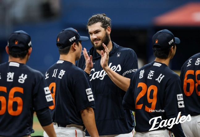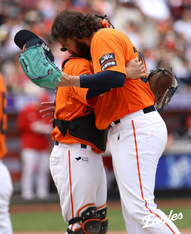 말 한 마디로 감동을 주는 에이스는 한화에 한 명 더 있다. 폰세와 함께 이글스 구단 역사상 최초로 전반기 외인 동반 10승에 성공한 '대전 예수' 라이언 와이스(29) 역시 전담 포수 이재원(37)에게 애틋한 심정을 드러냈다.