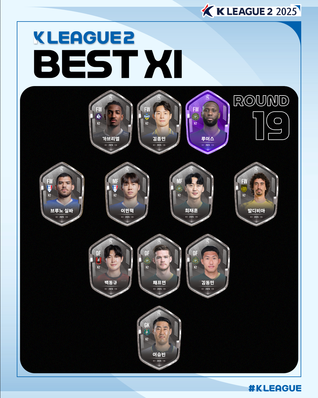 [하나은행 K리그2 2025 19R MVP, 베스트 팀/매치, 베스트11]