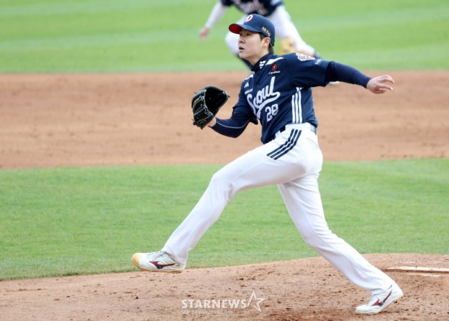 지난 2021년 2차 2라운드 전체 20순위로 두산에 입단한 최승용. 2023 아시아 프로야구 챔피언십(APBC) 대회와 2024 WBSC(세계야구소프트볼연맹) 프리미어 12 대회에서는 국가대표로 활약했다.