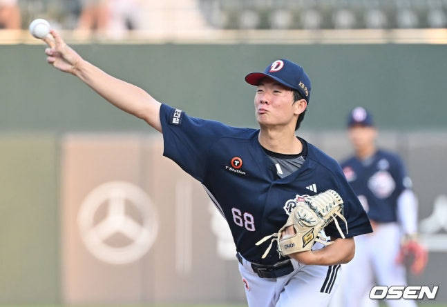 이날 두산은 이유찬(유격수)-정수빈(중견수)-제이크 케이브(우익수)-양의지(포수)-김재환(지명타자)-박준순(3루수)-오명진(2루수)-강승호(1루수)-추재현(좌익수)의 라인업으로 들고 나왔다. 최근 좌완투수가 나올 때 이유찬을 1번, 정수빈을 2번으로 배치한 두산은 이날도 홍민기를 상대로 타순을 꾸려갔다.
