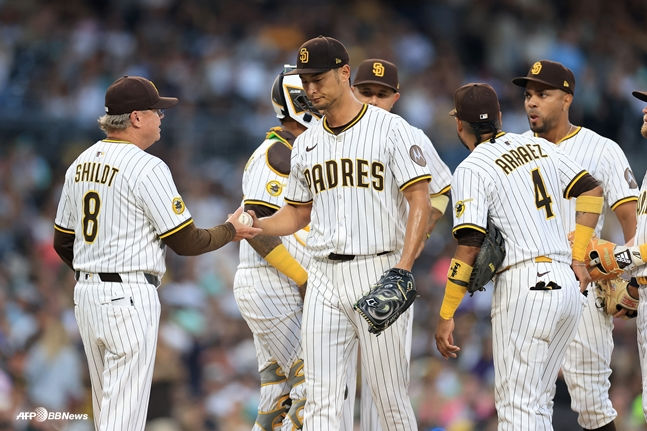 다르빗슈는 8일(한국시간) 미국 캘리포니아주 샌디에이고에 위치한 펫코 파크에서 열린 2025 메이저리그(MLB) 애리조나 다이아몬드백스전에 선발 등판해 3⅔이닝 3피안타 3볼넷 5탈삼진 2실점으로 패전 투수가 됐다. 이날 다르빗슈는 63구를 던졌고 최고 구속은 시속 95.9마일(약 154㎞)에 달했다.