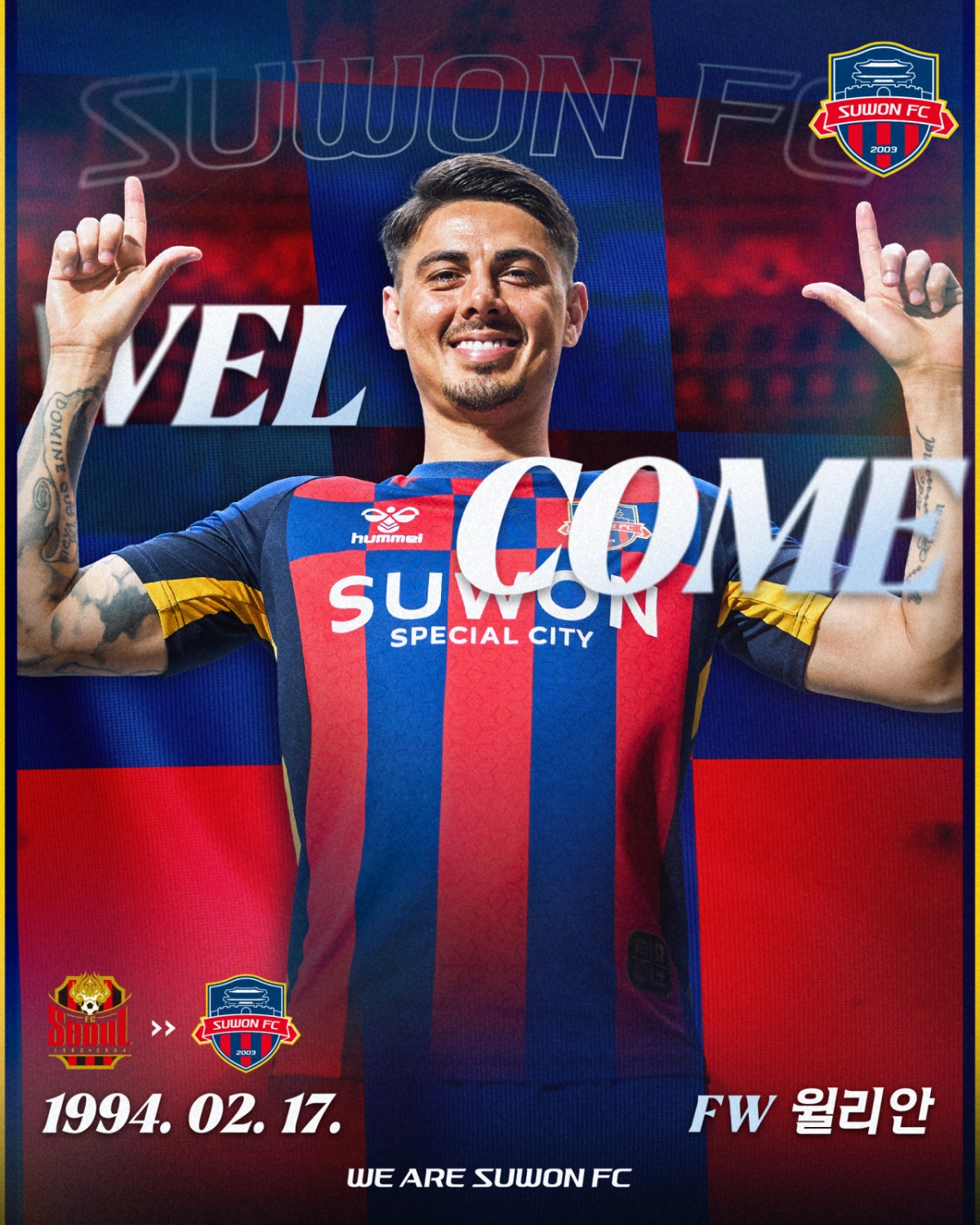 수원FC는 9일 "K리그 통산 50득점을 기록한 베테랑 공격수 윌리안을 영입하며 후반기 반등을 위한 공격 전력 강화에 나섰다"며 "빠른 발과 돌파 능력을 갖춘 윌리안은 수원FC 공격진에 즉각적인 활력을 불어넣을 자원으로 기대를 모은다. 등번호는 44번"이라고 밝혔다.