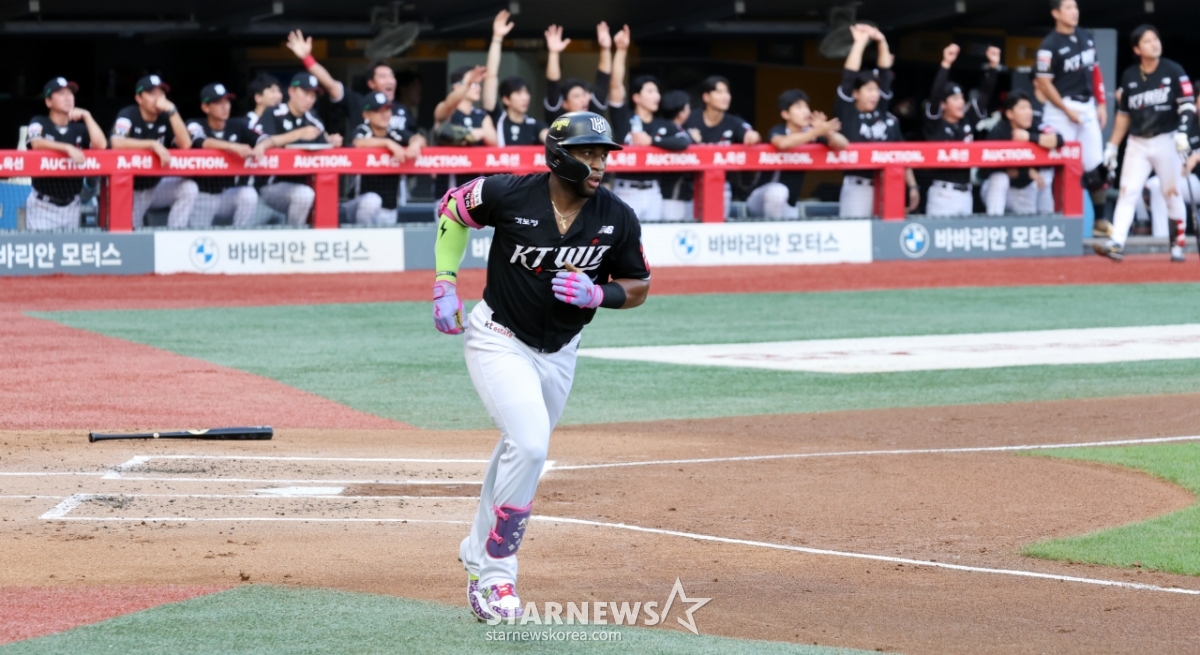스포츠야구[포토]'다들 본겨' 로하스발행 : 2025.07.09 ・ 19:20인천=강영조 선임기자KT 5번타자 로하스가 9일 인천SSG랜더스필드에서 열린 2025KBO리그 SSG랜더스와 KT위즈 경기 2회초 문승원을 상대로 솔로홈런을 터트린 후 홈인하고 있다. 2025.07.09.<저작권자 © 스타뉴스, 무단전재 및 재배포 금지>로하스랜더스인천위즈문승원토다추천 기사강영조 선임기자기자홈좋아요 스포츠-야구의 인기 급상승 뉴스스포츠-야구의 최신 뉴스