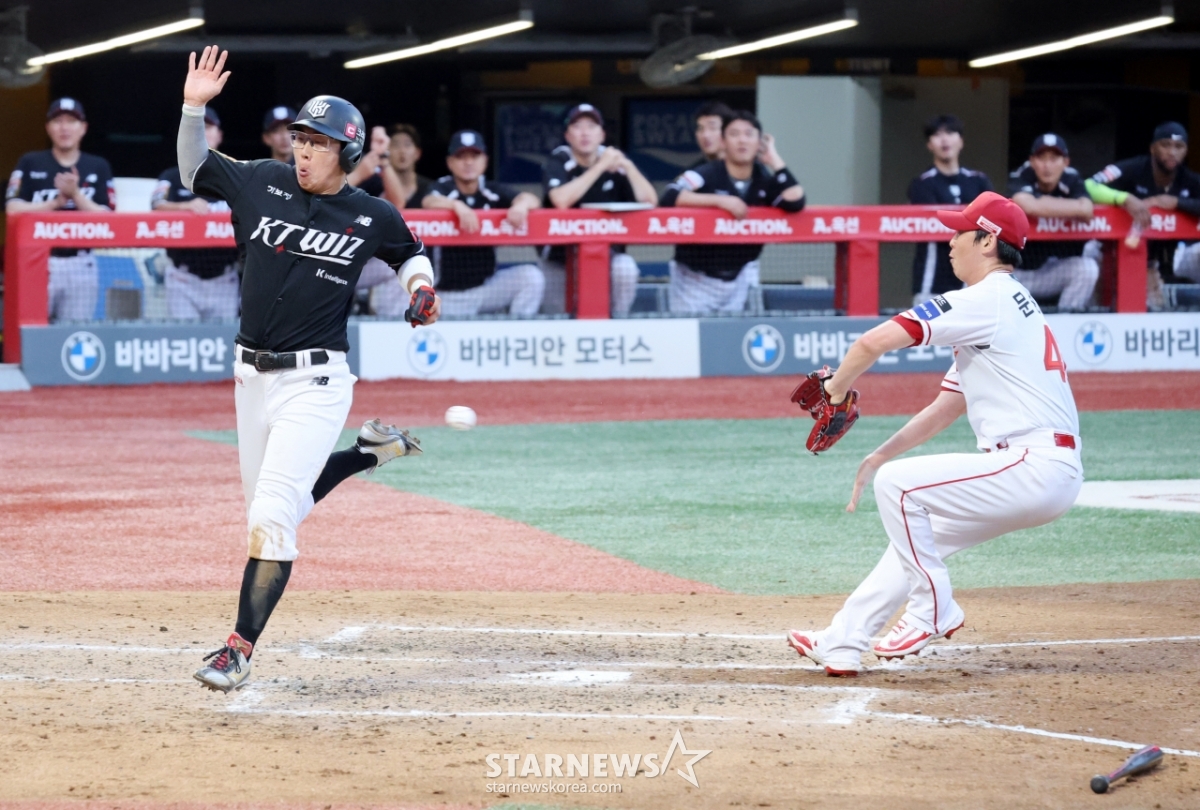 스포츠야구[포토]'이건 맞으면 나만 손해' 득점 허경민발행 : 2025.07.09 ・ 19:48인천=강영조 선임기자KT 6번타자 허경민이 9일 인천SSG랜더스필드에서 열린 2025KBO리그 SSG랜더스와 KT위즈 경기 4회초 2사 3루 이정훈 타석때 패스트볼로 스트라이크아웃낫아웃이 되는 사이 득점에 성공하고 있다. 2025.07.09.<저작권자 © 스타뉴스, 무단전재 및 재배포 금지>허경민랜더스득점인천위즈이정훈추천 기사강영조 선임기자기자홈좋아요 스포츠-야구의 인기 급상승 뉴스스포츠-야구의 최신 뉴스