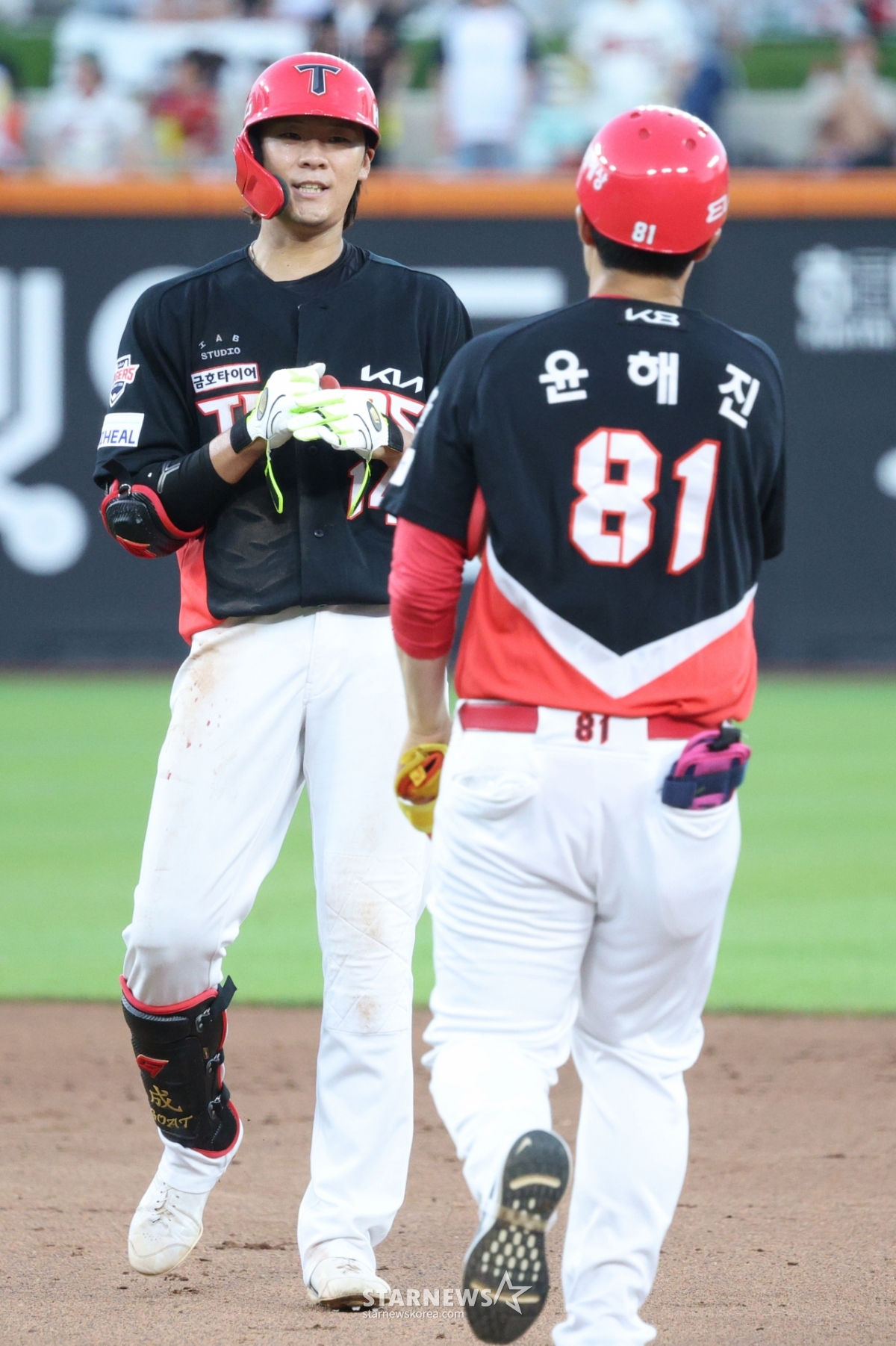스포츠야구[포토] 김규성 '꽃미소 2루타'발행 : 2025.07.09 ・ 19:57대전=김진경 대기자2025 신한 SOL Bank KBO리그 한화 이글스 대 KIA 타이거즈 경기가 일 대전 한화생명 볼파크에서 열렸다.KIA 김규성이 4회초 1사 2루에서 1타점 적시 2루타를 날리고 출루한 후 윤해진 코치의 환영을 받고 있다.<저작권자 © 스타뉴스, 무단전재 및 재배포 금지>류현진프로야구KBO문동주윤영철한회_이글스추천 기사김진경 대기자기자홈좋아요 스포츠-야구의 인기 급상승 뉴스스포츠-야구의 최신 뉴스