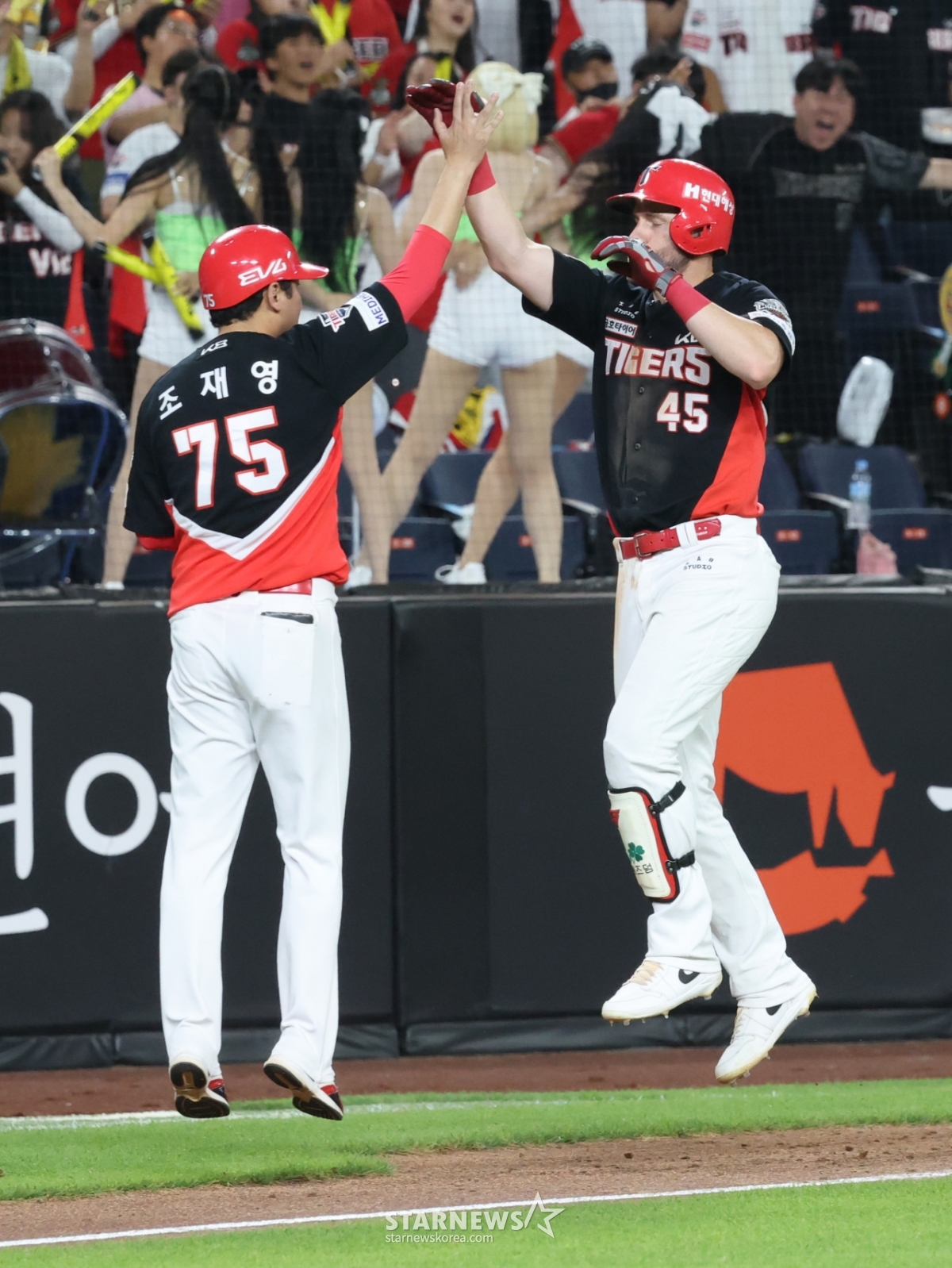 스포츠야구[포토] 위즈덤 '오늘도 3루 점핑'발행 : 2025.07.09 ・ 21:14대전=김진경 대기자2025 신한 SOL Bank KBO리그 한화 이글스 대 KIA 타이거즈 경기가 일 대전 한화생명 볼파크에서 열렸다.KIA 위즈덤이 8회초 무사에서 좌월 1점 홈런을 날리고 홈인하고 있다.<저작권자 © 스타뉴스, 무단전재 및 재배포 금지>류현진프로야구KBO문동주윤영철한회_이글스추천 기사김진경 대기자기자홈좋아요 스포츠-야구의 인기 급상승 뉴스스포츠-야구의 최신 뉴스