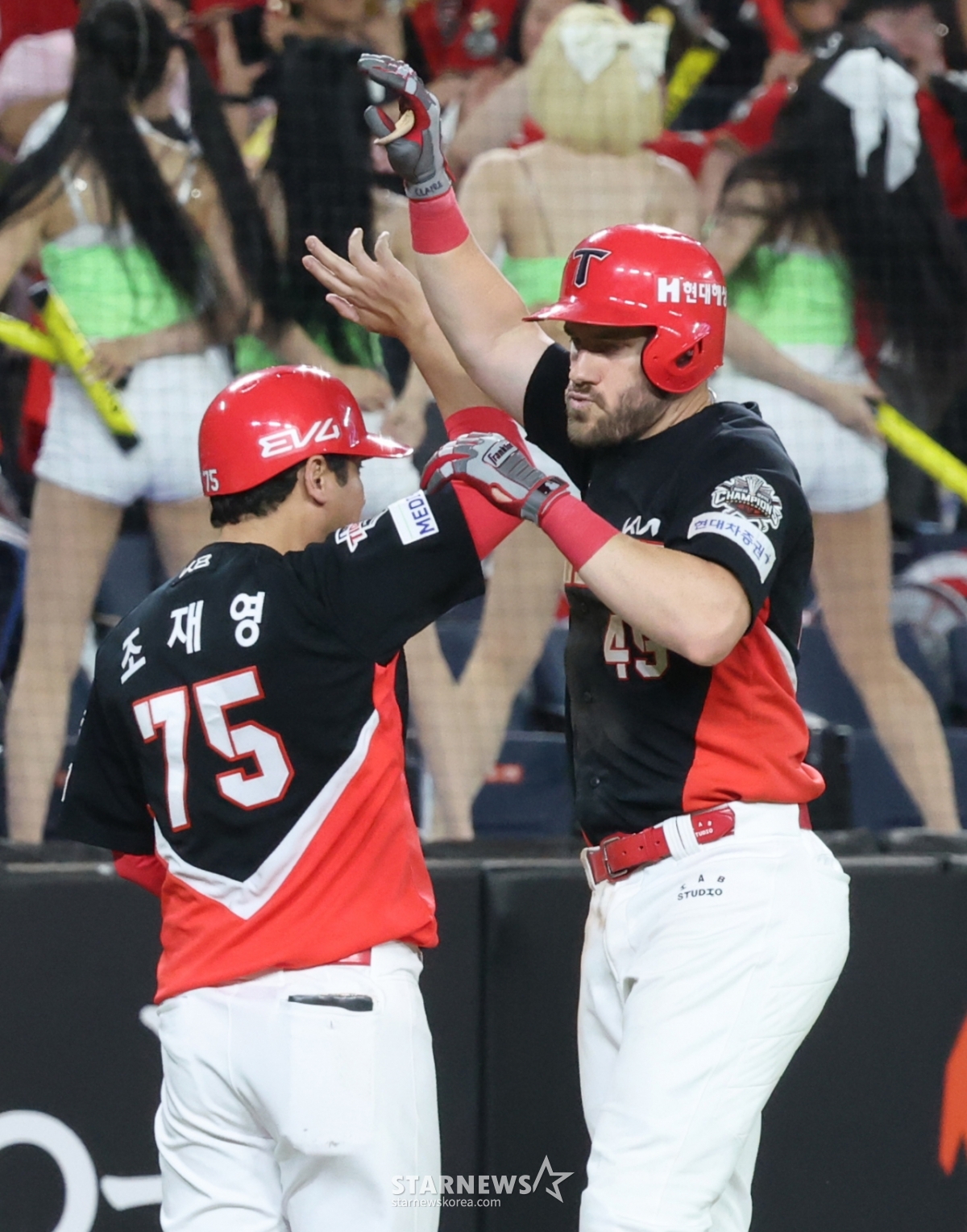 스포츠야구[포토] 위즈덤 '김한나 뭐하는 거임'발행 : 2025.07.09 ・ 21:15대전=김진경 대기자2025 신한 SOL Bank KBO리그 한화 이글스 대 KIA 타이거즈 경기가 일 대전 한화생명 볼파크에서 열렸다.KIA 위즈덤이 8회초 무사에서 좌월 1점 홈런을 날리고 홈인하고 있다.<저작권자 © 스타뉴스, 무단전재 및 재배포 금지>류현진프로야구KBO문동주윤영철한회_이글스추천 기사김진경 대기자기자홈좋아요 스포츠-야구의 인기 급상승 뉴스스포츠-야구의 최신 뉴스
