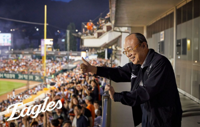 김승연 한화그룹 회장이 2025 KBO리그 정규시즌에서 전반기 1위를 확정한 한화 이글스 선수단에 특별 선물을 전달했다.