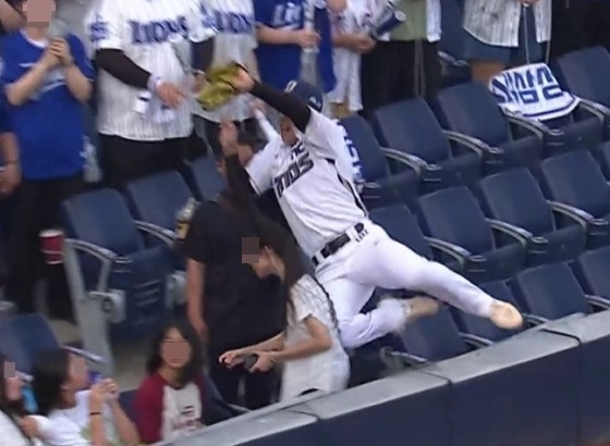 이 과정에서 김휘집이 그물 바로 앞에 있던 남녀 관중과 충돌했다. 무릎을 맞은 여성 관중은 휘청였고, 몸통과 부딪힌 남성 팬은 넘어지면서 들고 있던 음료를 쏟을 뻔했다. 자칫 큰 부상으로 이어질 수도 있던 위험천만한 상황이었다.