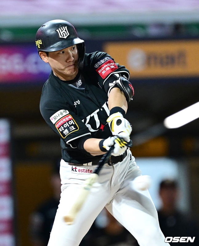 KT는 10일 인천 SSG랜더스필드에서 열린 SSG 랜더스와 2025 신한 SOL뱅크 KBO리그 방문경기에서 4-2로 이겼다.