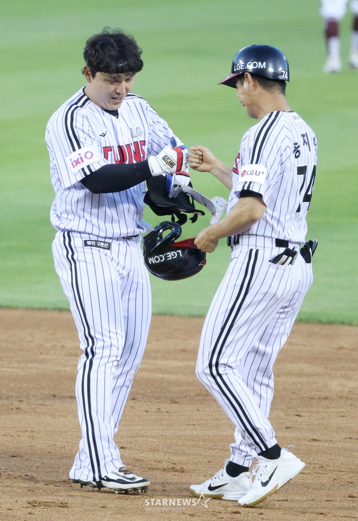 스포츠야구[포토] 박동원 '뒤집는 건 시간 문제'발행 : 2025.07.10 ・ 20:30잠실=김진경 대기자2025 신한 SOL Bank KBO리그 LG 트윈스 대 키움 히어로즈 경기가 10일 서울 잠실야구장에서 열렸다.LG 박동원이 4회말 무사에서 키움 선발 알칸타라를 상대로 우웡 2루타를 날리고 출루한 후 송지만 코치의 축하를 받고 있다.<저작권자 © 스타뉴스, 무단전재 및 재배포 금지>프로야구KBO박해민송성문승요승리요정추천 기사김진경 대기자기자홈좋아요 스포츠-야구의 인기 급상승 뉴스스포츠-야구의 최신 뉴스