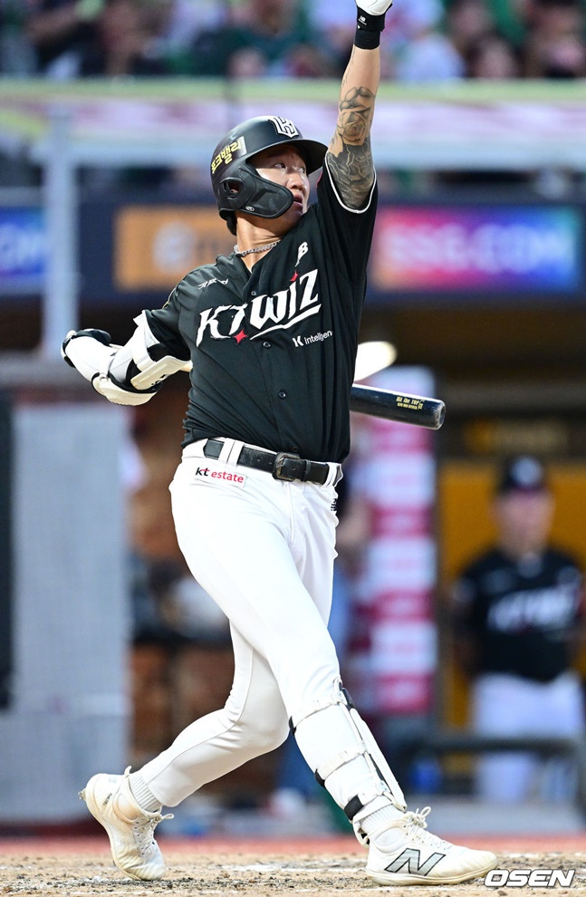 이어 고영표가 6회까지 잘 던지고 물러난 7회초 이정훈의 2루타에 이어 이번에도 김민혁이 3루 주자를 불러들이는 타구를 날렸다. 이어 타석에 나선 또 다른 대타 오윤석도 1타점 쐐기 적시타를 때려냈다.