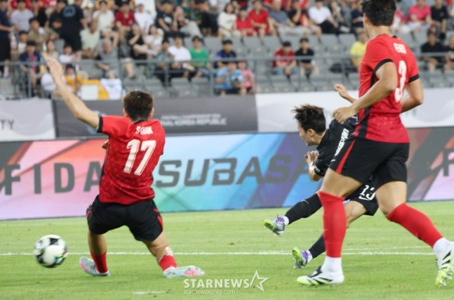 한국은 후반 시작과 동시에 조현택과 김태현(전북 현대)을 빼고 문선민과 모재현을 투입하며 양 날개를 교체했다. 공격 전술에 대한 실험을 개시한 한국은 후반 6분 서명관의 중거리 슈팅으로 공격의 포문을 열었다. 후반 17분에는 이승원 대신 김진규를 넣었다.