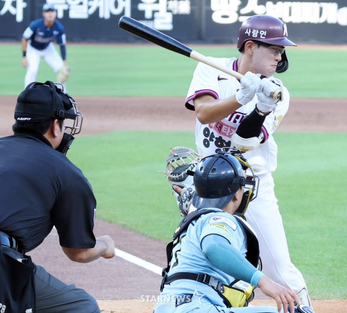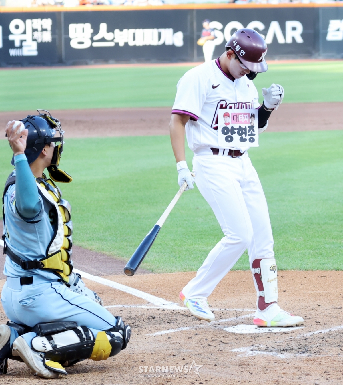 북부 양현종 함께 11일 대전한화생명볼파크에서 열린 2025KBO리그 퓨처스리그 올스타전 남부리그 대 북부리그경기 2회말 KIA투수 양현종 퍼포먼스를 한 후 타석에 들어서고 있다. 2025.07.11.