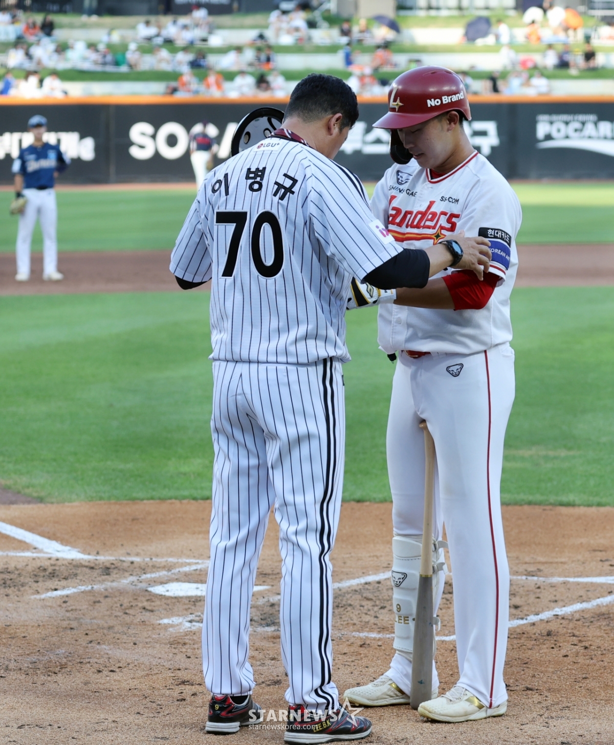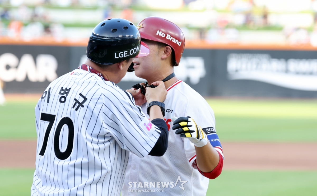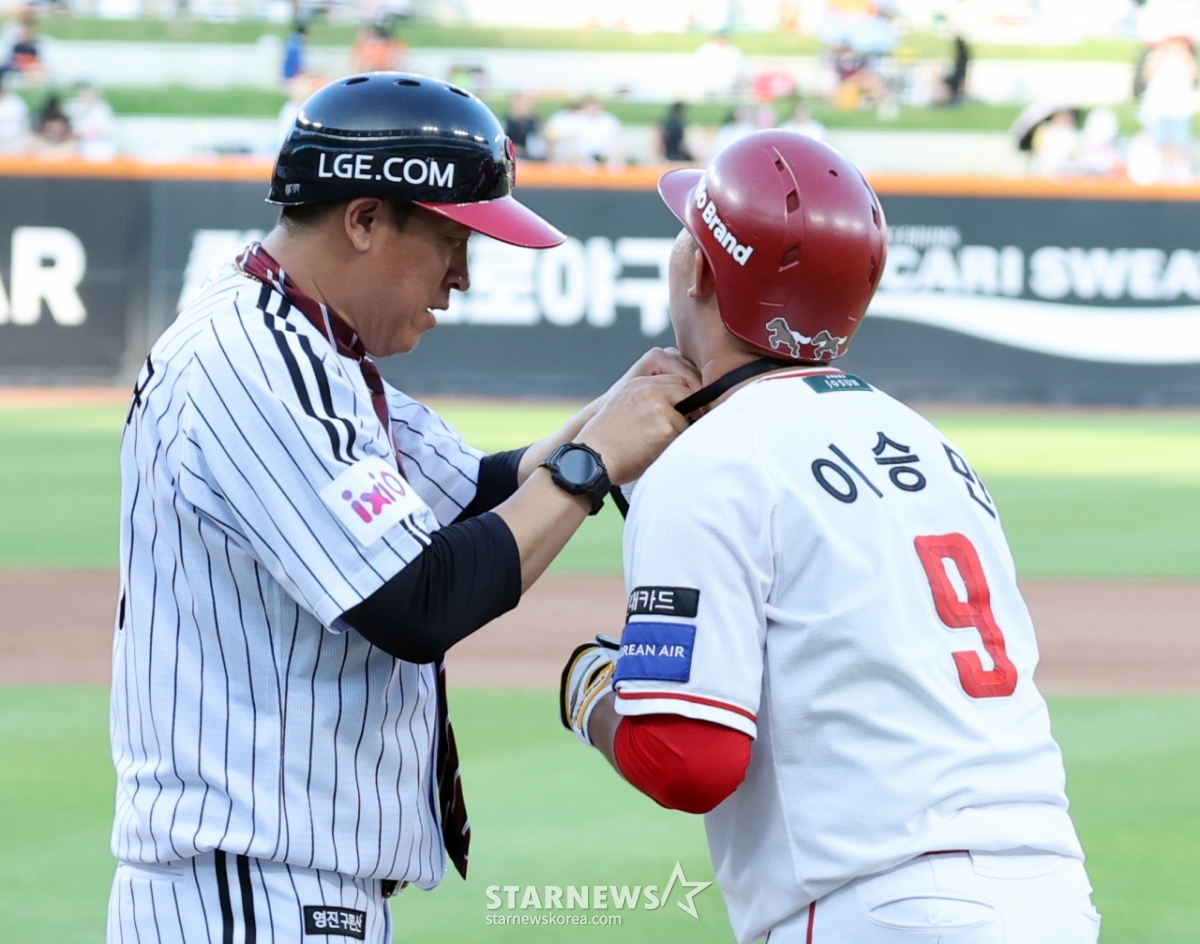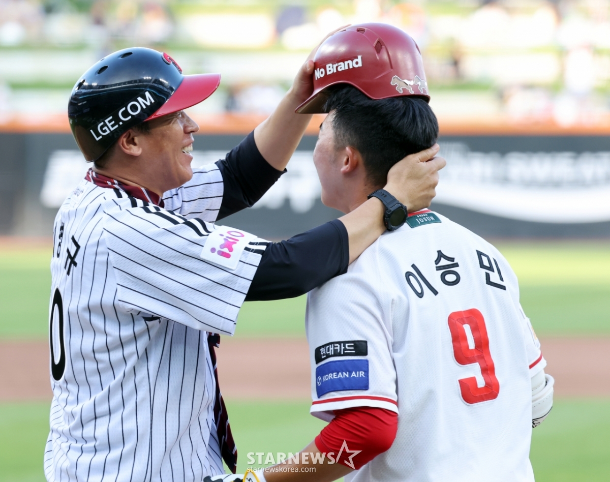 스포츠야구[★한번에쓱]이병규 LG 감독과 장남 이승민, 애정넘치는 퍼포먼스발행 : 2025.07.11 ・ 18:54조회수 :수정 : 2025.07.11 ・ 22:45대전=강영조 선임기자북부 이승민과 아버지 LG 이병규 2군감독이 11일 대전한화생명볼파크에서 열린 2025KBO리그 퓨처스리그 올스타전 남부리그 대 북부리그경기 2회말 타석에 들어서며 퍼포먼스와 애정표현을 해 눈길을 끌고 있다. 2025.07.11.<저작권자 © 스타뉴스, 무단전재 및 재배포 금지>브리핑추천 기사강영조 선임기자기자홈좋아요스포츠-야구의 인기 급상승 뉴스스포츠-야구의 최신 뉴스AD