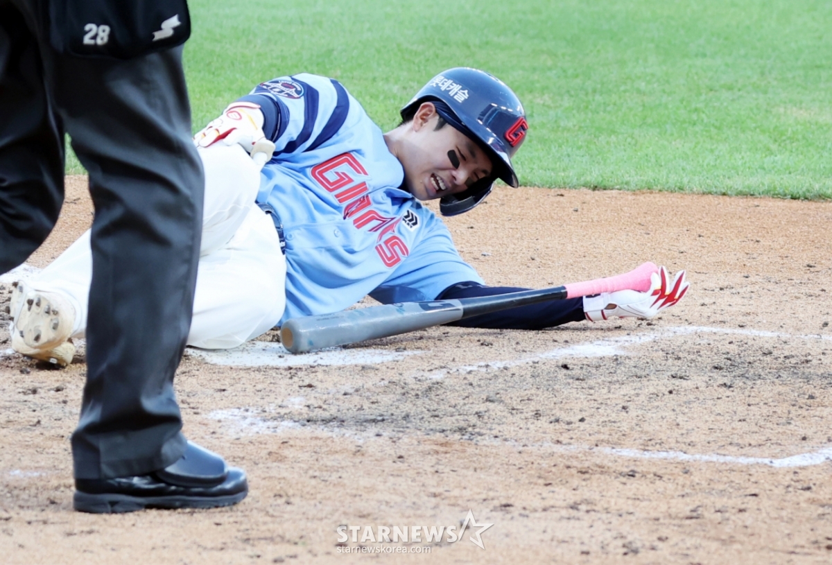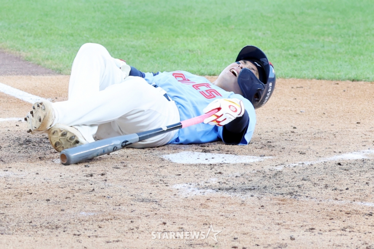 스포츠야구[포토]'존경하는 롯데 정훈 선배 따라하기 쉽지않네'발행 : 2025.07.11 ・ 19:27수정 : 2025.07.11 ・ 22:44대전=강영조 선임기자남부 이태경이 11일 대전한화생명볼파크에서 열린 2025KBO리그 퓨처스리그 올스타전 남부리그 대 북부리그경기 4회초 1사 1루 롯데 정훈의 이름이 새겨진 유니폼을 입고 타석에 들어섰다 자신의 타구에 맞아 고통스러워하고 있다. 2025.07.11.<저작권자 © 스타뉴스, 무단전재 및 재배포 금지>롯데정훈이태경대전볼파크퓨처스추천 기사강영조 선임기자기자홈좋아요 스포츠-야구의 인기 급상승 뉴스스포츠-야구의 최신 뉴스