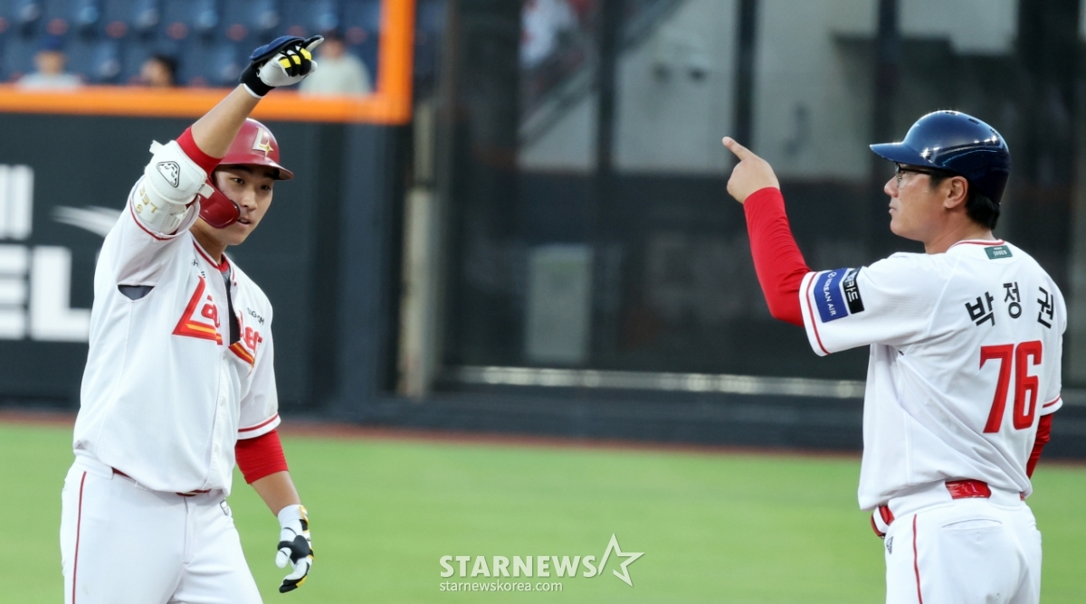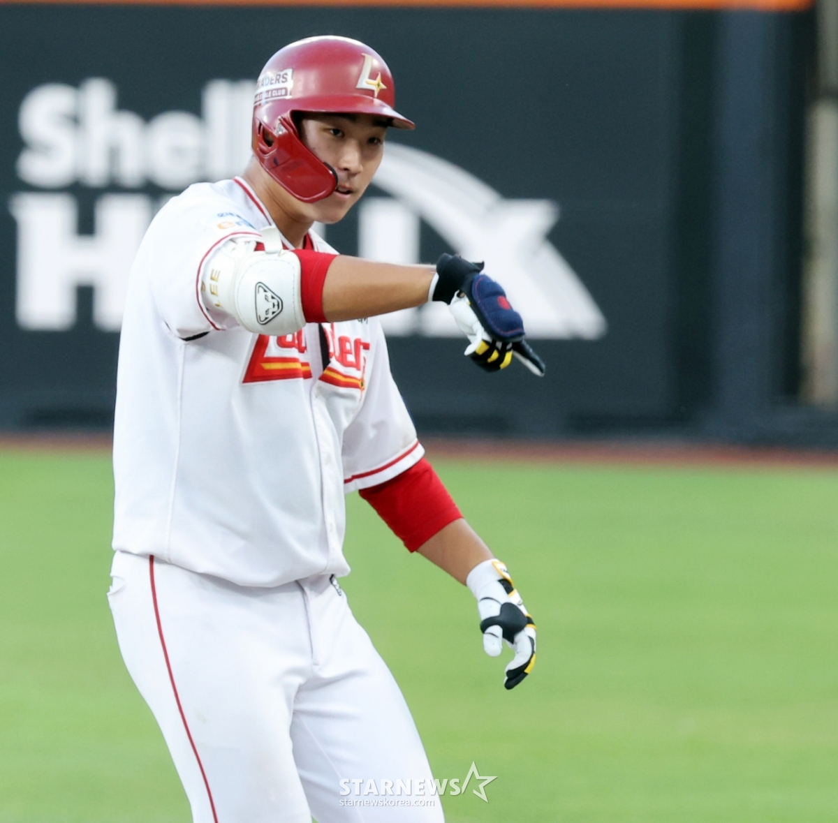 북부 이승민이 11일 대전한화생명볼파크에서 열린 2025KBO리그 퓨처스리그 올스타전 남부리그 대 북부리그 경기 5회초 안타로 출루하고 있다. 이승민은 이병규 LG감독 아들이다. 2025.07.11.