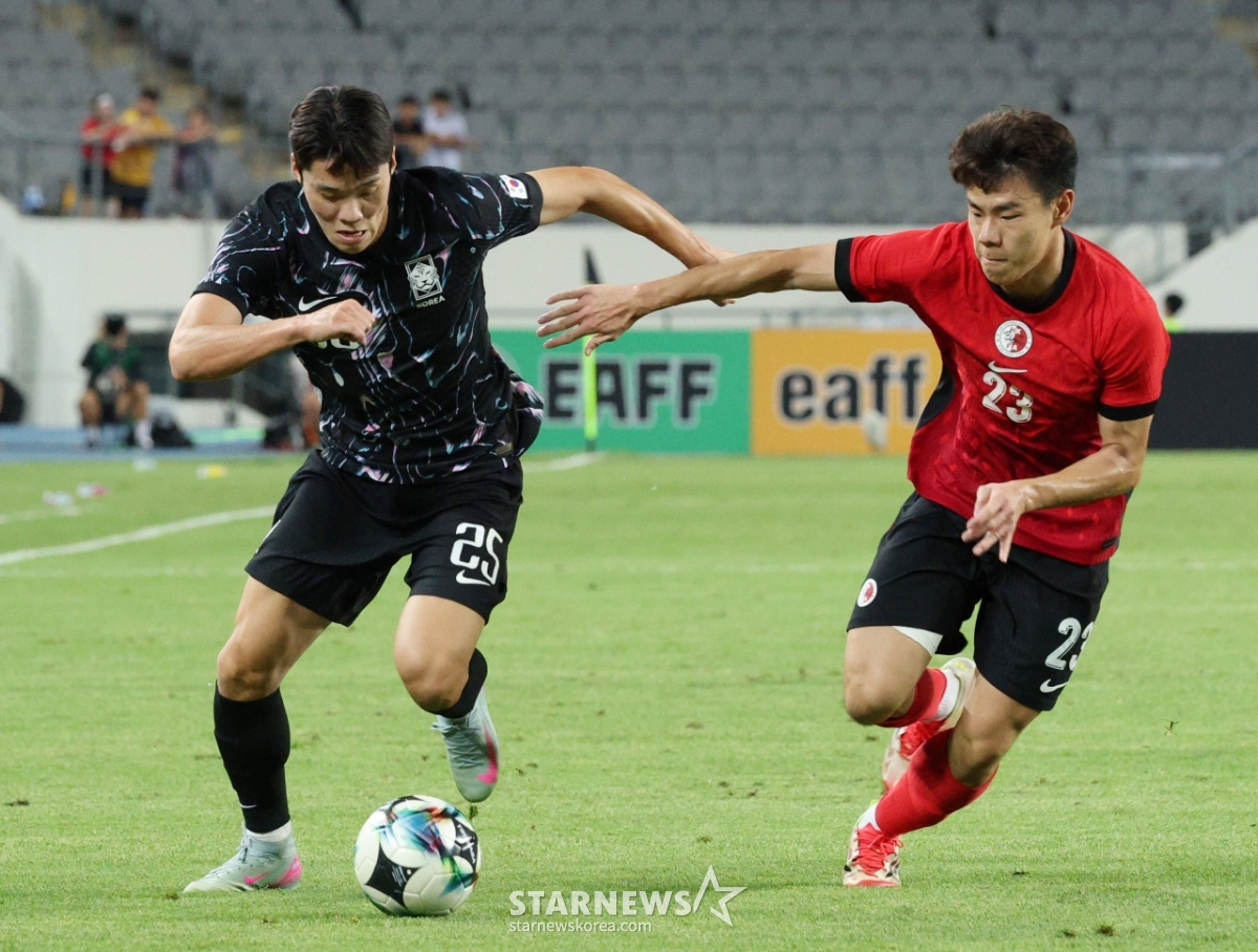스포츠축구[포토] 모재현 '돌파는 나의 힘'발행 : 2025.07.11 ・ 21:21용인=김진경 대기자광고삭제2025 동아시아축구연맹(EAFF) E-1 풋볼 챔피언십(동아시안컵) 한국-홍콩전이 11일 경기도 용인미르스타디움에서 열렸다.대한민국 모재현이 홍콩 순 밍 힘을 제치고 사이드 돌파를 하고 있다.<저작권자 © 스타뉴스, 무단전재 및 재배포 금지>용인미르스타디움이동경동아시안컵홍콩이청근조현택추천 기사김진경 대기자기자홈좋아요 스포츠-축구의 인기 급상승 뉴스스포츠-축구의 최신 뉴스