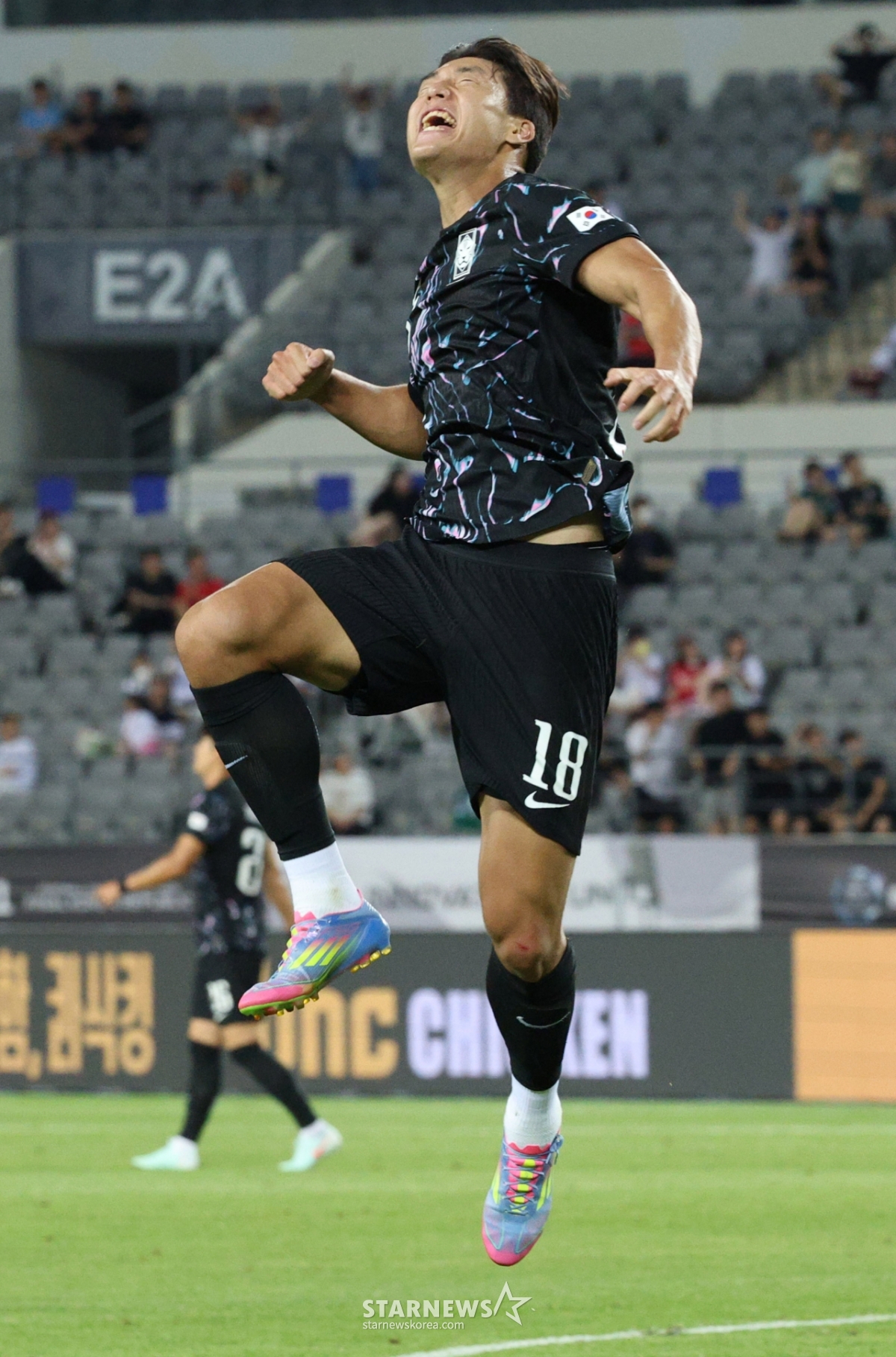 스포츠축구[포토] 이호재 '점핑 세리머니 통일'발행 : 2025.07.11 ・ 21:29용인=김진경 대기자2025 동아시아축구연맹(EAFF) E-1 풋볼 챔피언십(동아시안컵) 한국-홍콩전이 11일 경기도 용인미르스타디움에서 열렸다.대한민국 이호재가 두 번째 골을 터뜨린 후 포효하고 있다.<저작권자 © 스타뉴스, 무단전재 및 재배포 금지>용인미르스타디움이동경동아시안컵홍콩이청근조현택추천 기사김진경 대기자기자홈좋아요 스포츠-축구의 인기 급상승 뉴스스포츠-축구의 최신 뉴스