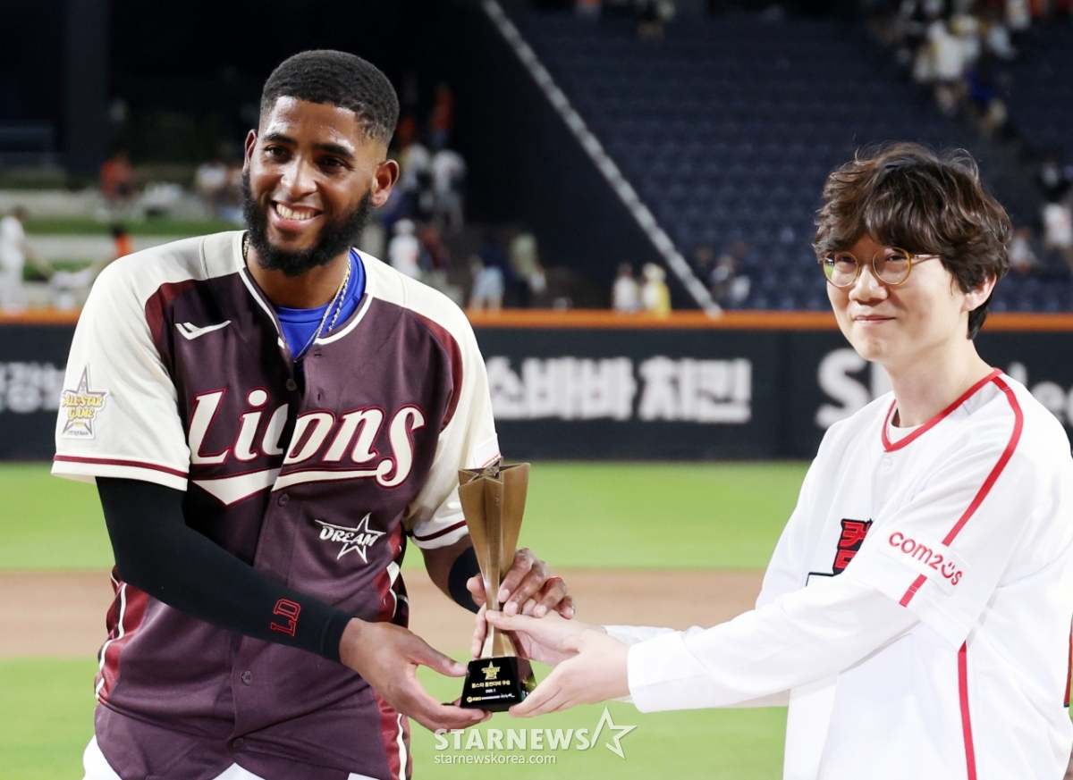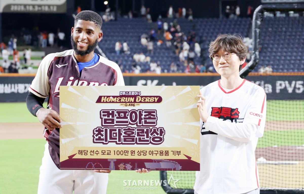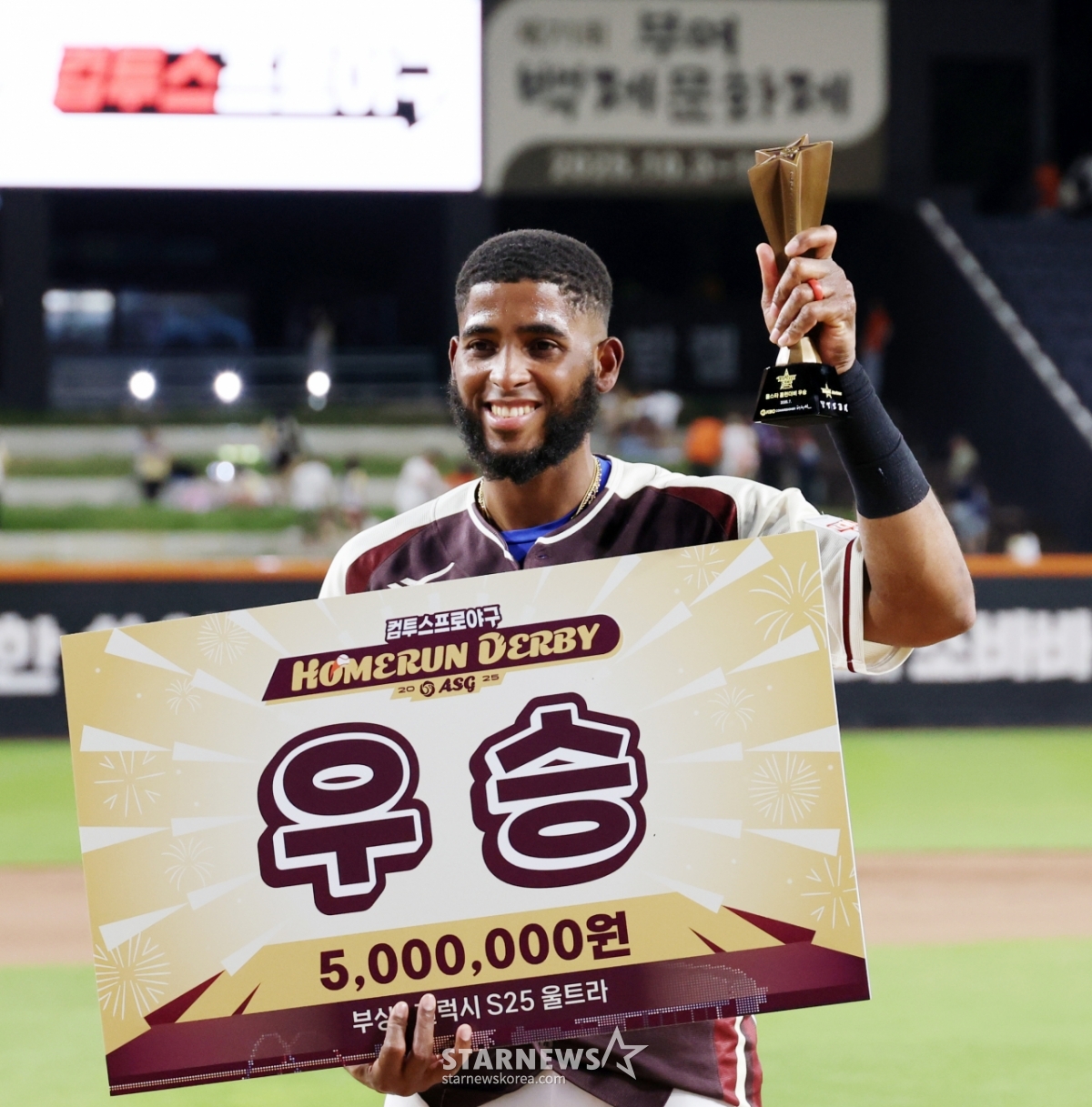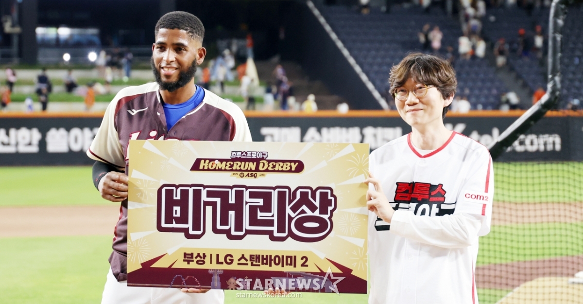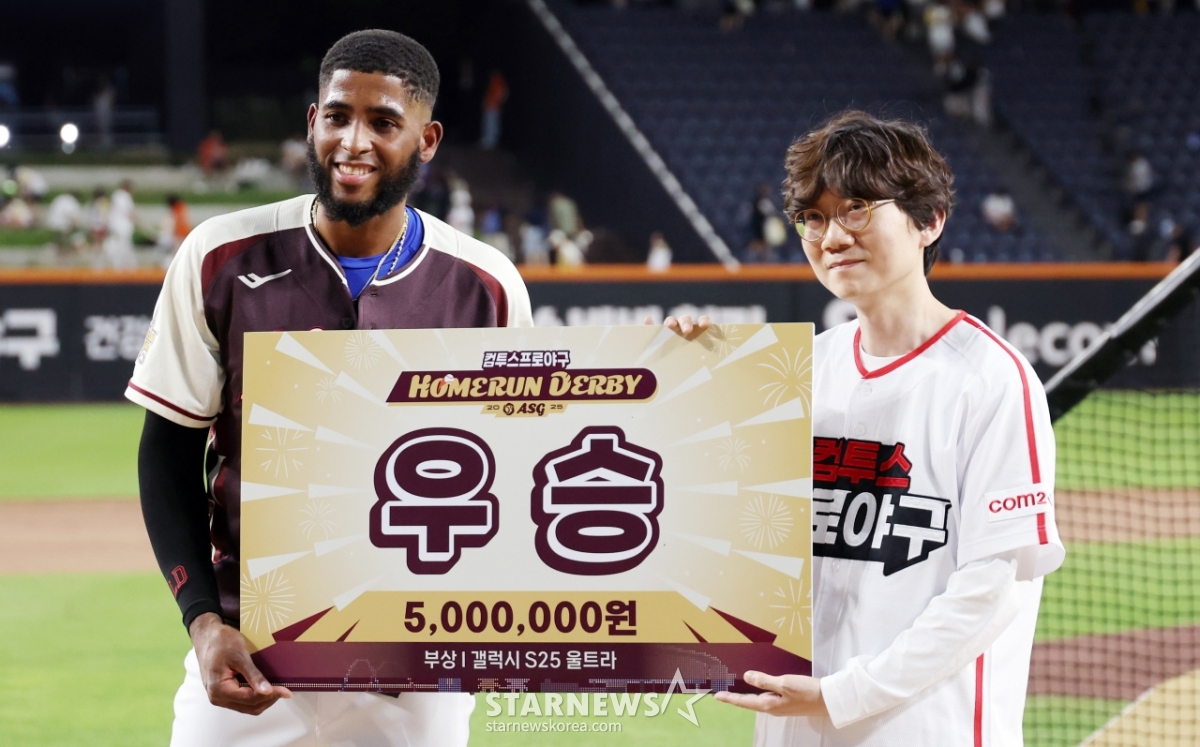 스포츠야구[★한번에쓱]'상이 몇개야?' 홈런레이스 우승 디아즈발행 : 2025.07.11 ・ 22:54수정 : 2025.07.11 ・ 23:31대전=강영조 선임기자광고삭제삼성 디아즈가 11일 대전한화생명볼파크에서 열린 2025KBO리그 퓨처스리그 올스타전 남부리그 대 북부리그 경기 종료후 진행된 올스타 홈런레이스에서 박동원을 꺾고 우승한 후 비거리상,최다홈런상 등을 수상하고 있다. 2025.07.11.<저작권자 © 스타뉴스, 무단전재 및 재배포 금지>디아즈홈런레이스우승삼성대전추천 기사강영조 선임기자기자홈좋아요 스포츠-야구의 인기 급상승 뉴스스포츠-야구의 최신 뉴스