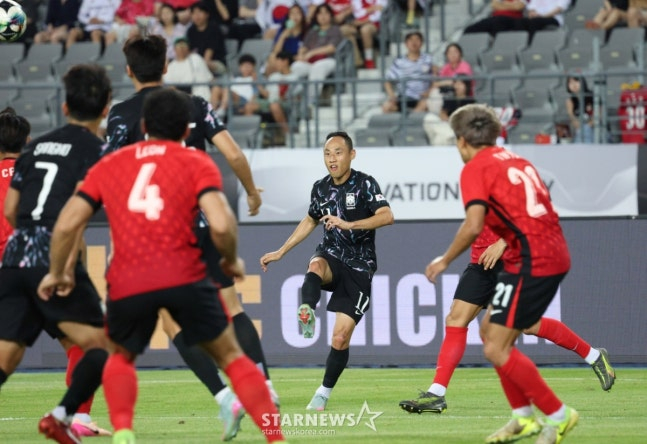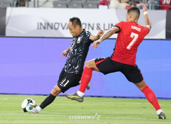 문선민 역시 3-4-3 포메이션에서 왼쪽 측면 윙백으로 뛰며 홍콩 진영을 그야말로 휩쓸었다. 특히 후반 22분 왼쪽 측면에서 날카로운 크로스를 연결해 이호재의 A매치 데뷔골에 도움을 줬다. 문선민의 정확한 크로스가 빛났던 장면이었다. 돌파 이후 슈팅이 아쉽게 빗나가긴 했지만 이날 대표팀 선수 가운데 인상적인 활약을 펼친 것은 분명했다. 마치 전성기 시절 윙어였다가 최근 윙백으로 변신한 이반 페리시치(37·PSV 아인트호벤)를 떠올리게 했다.