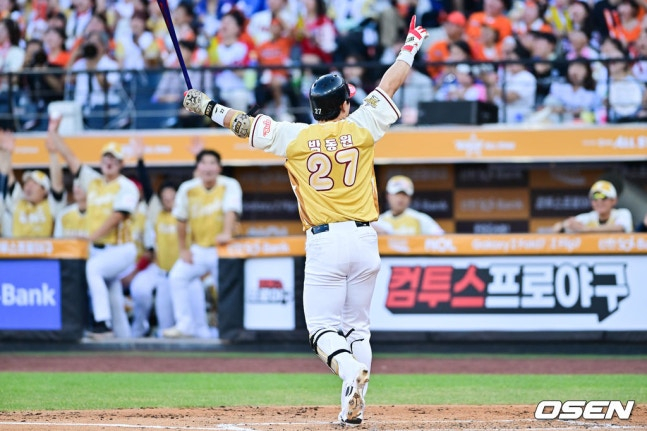 이어 '채이 아빠' 박동원이 쐐기를 박았다. 딸의 응원을 받으며 타석에 나온 그는 박세웅의 5구째 높은 패스트볼을 잡아당겨 왼쪽 담장을 넘어가는 2점 홈런을 터트렸다. 박동원 개인의 올스타전 첫 홈런이었다. 전날 열린 홈런더비에서 디아즈에게 밀려 준우승을 차지한 한을 푸는 순간이었다.