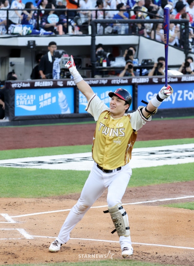 전반기를 1위 한화에 4.5경기 차로 뒤진 채 마친 LG는 본격적인 1위 쟁탈에 나선다. 여기서 박동원은 지난해 올스타전 MVP를 받고 한국시리즈 우승까지 차지한 KIA 최형우를 떠올렸다. 박동원은 "한화가 정말 좋은 팀이라 4.5경기 차가 쉽진 않을 것이다. 지난해 (최)형우 형이 미스터 올스타를 받고 우승까지 해서 기억이 남는다. 나뿐 아니라 누가 받든 그 이야기를 하려고 했다. 올해는 LG에서 (미스터 올스타가) 나왔으니까 지난해 KIA처럼 올해 우리가 우승했으면 좋겠다"고 강조했다.